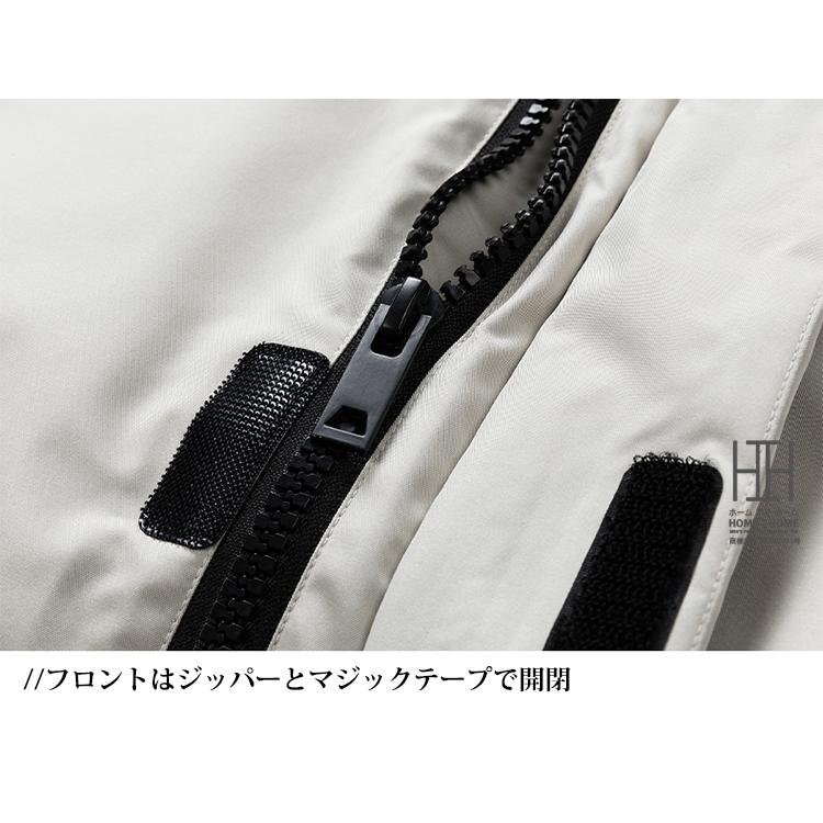 ディティール面では、フロントはジッパー&マジックテープ比翼の2重構造。