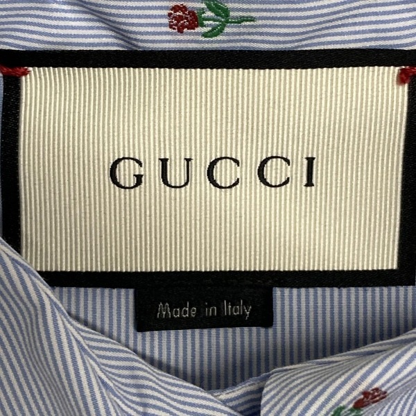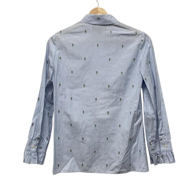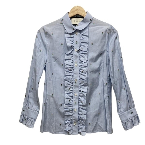 グッチ GUCCI 長袖シャツブラウス サイズ36 S 430885 Z346A - ライトブルー×白×マルチ レディース ストライプ/刺繍/フラワー(花)/フリル