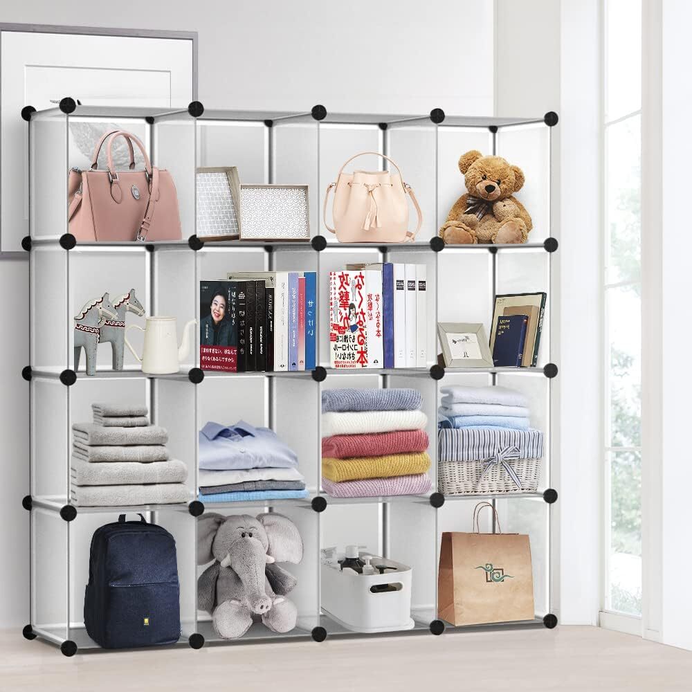 マットホワイト色 幅30×奥行30×高30㎝ 16ボックス 収納棚 大容量 収納ラック 組み立て式 整理棚 収納ボックス 本棚 衣類収納