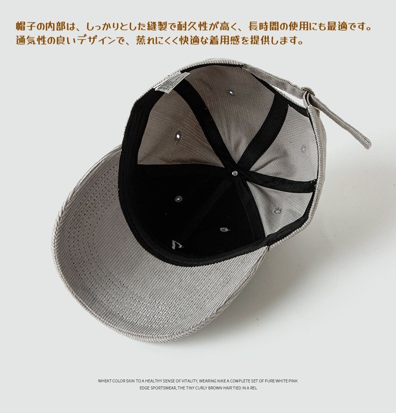 大きめサイズのキャップは、髪型やヘアアクセサリーを気にせず、余裕を持って被れるため、ヘアスタイルを崩す心配も少なく、快適な着用感が特徴です。特に、頭が大きめの方や帽子の締め付け感が苦手な方にもおすすめで、長時間の使用でもストレスフリーな感覚を味わえます。