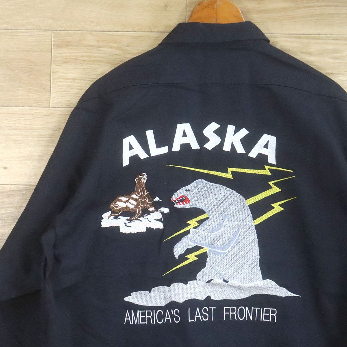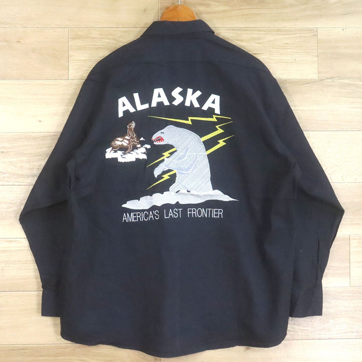 J8T/O9.15-5 アラスカジャン サンプリング CINTAS シンタス ワークシャツ XL 刺繍 シロクマ アザラシ スーベニア