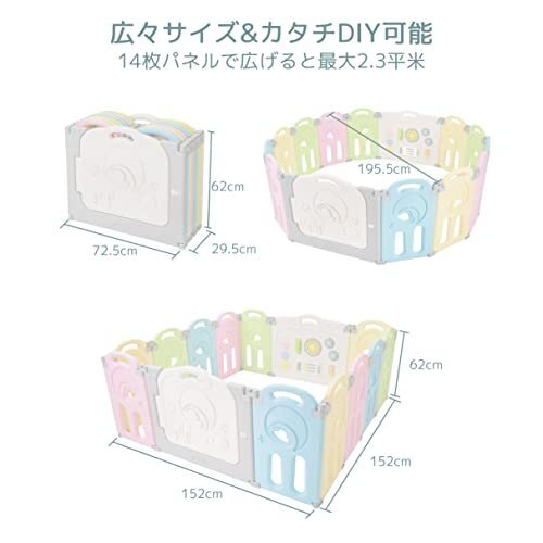 「赤ちゃんがのびのび遊べる広さ」広げると最大2.3平米・高さ62cm。