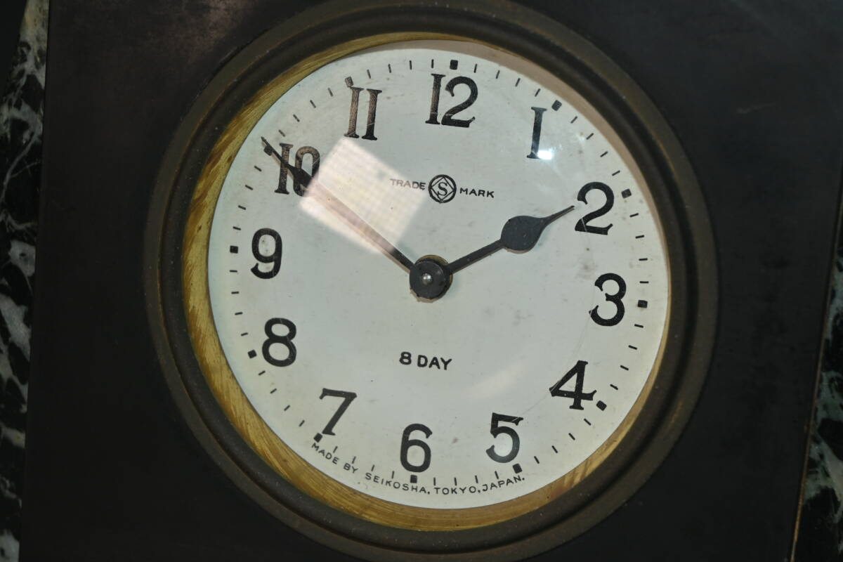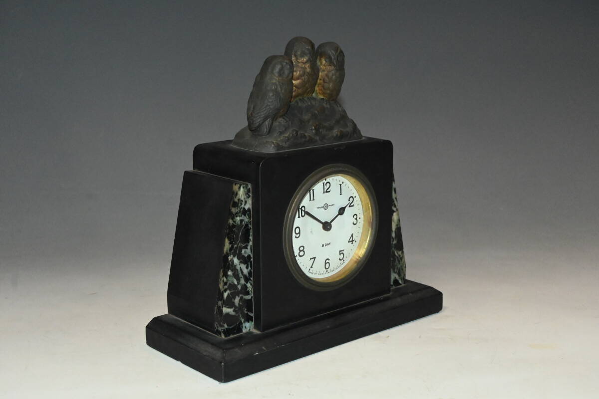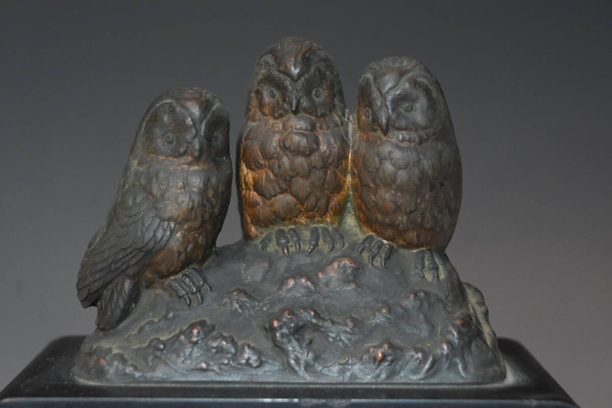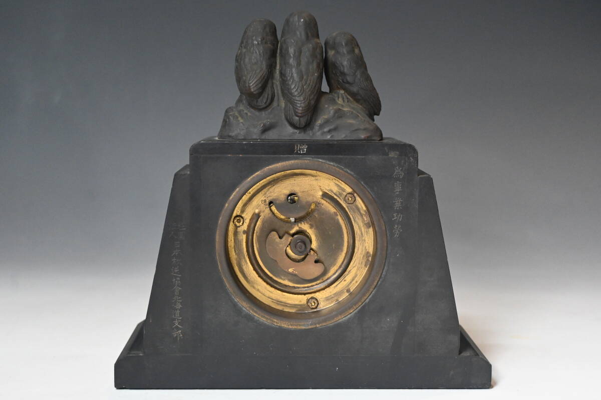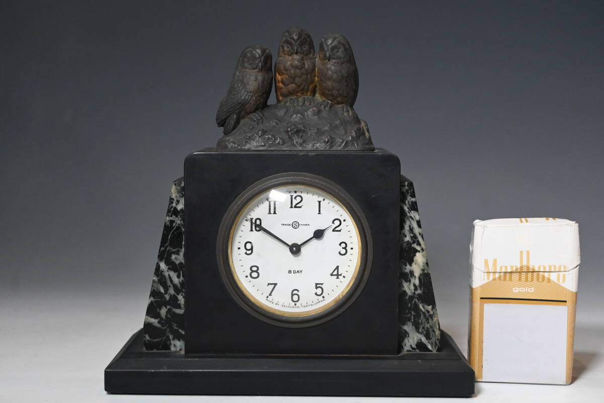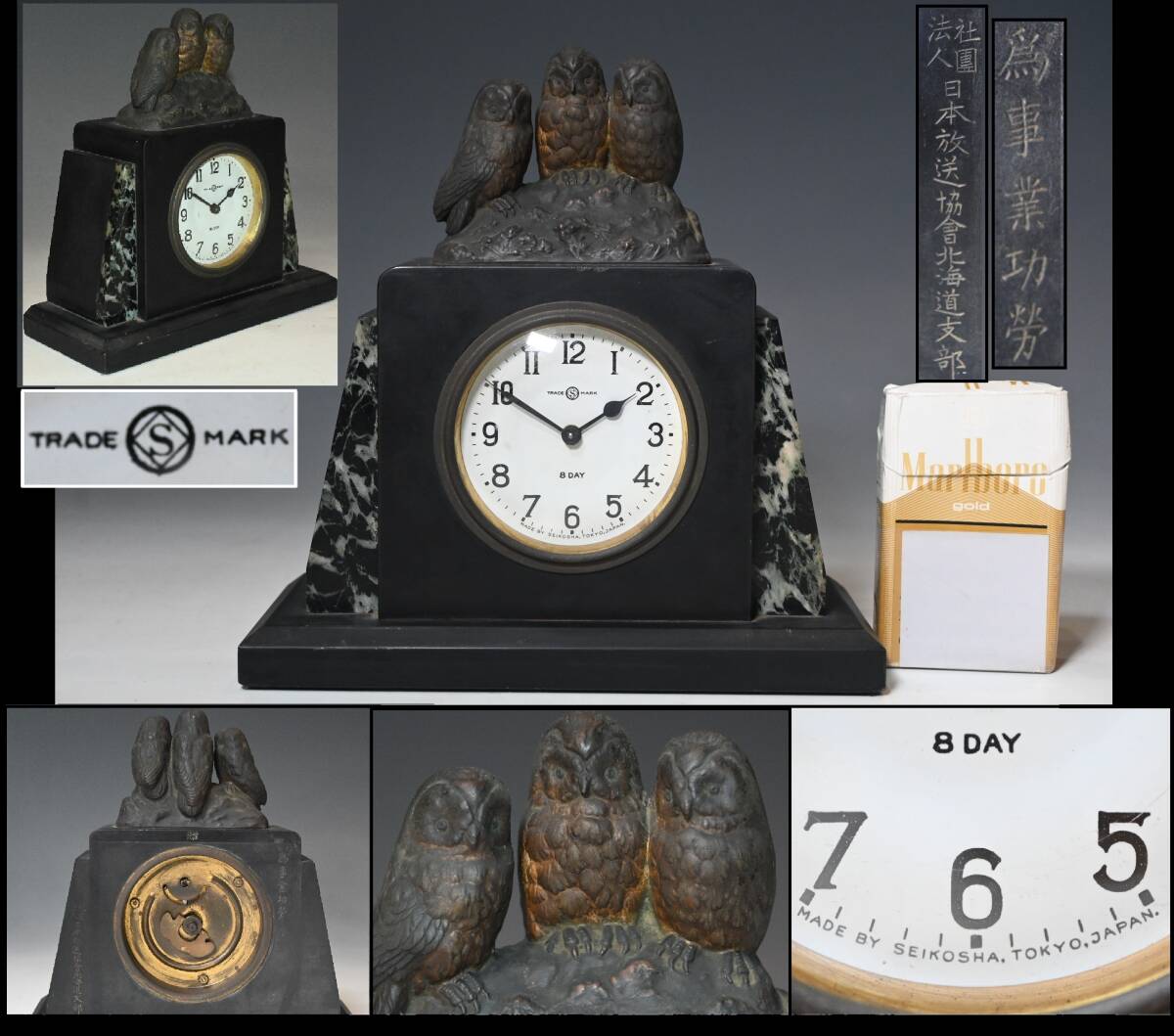 ■精工舎 SEIKOSHA■ 三羽のフクロウ 梟 手巻式置時計 8日巻 ジャンク品 可動 現状引渡 彫刻 アンティーク アールデコ 不苦労 記念品 8DAY | |||