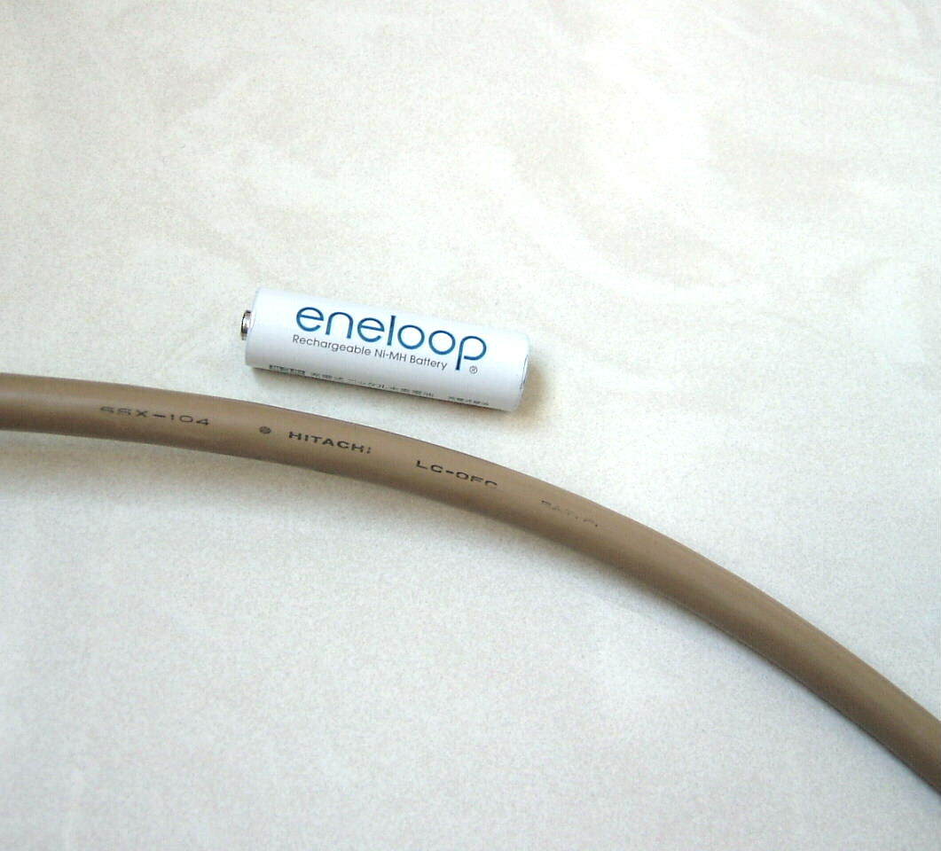 ■4芯構造で太さもあり好感が持てるケーブルです 写真内のサイズ比較用電池は単三です