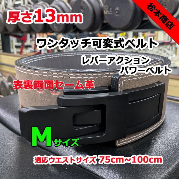 レバーアクションベルト パワーベルト ワンタッチ可変式13mm Mサイズ 両面セーム本革ベルト 筋トレ トレーニングギア 松本商店