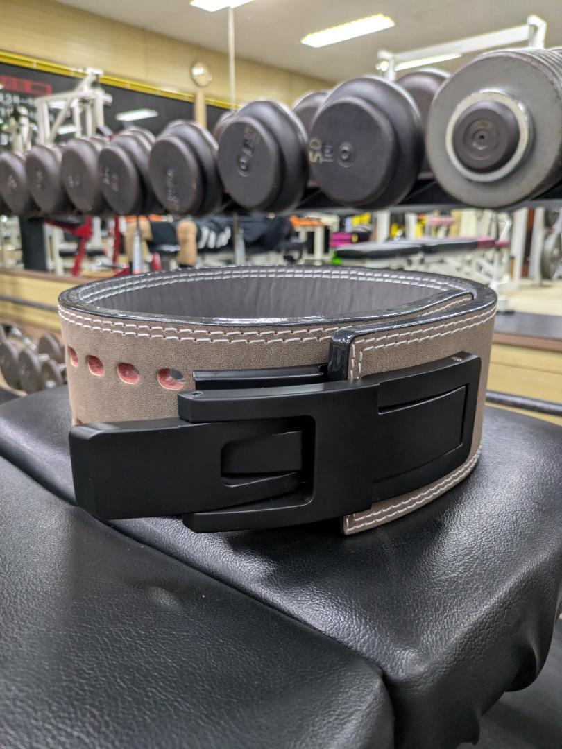 レバーアクションによりワンタッチで着脱締め付け可能なトレーニングベルトになります。