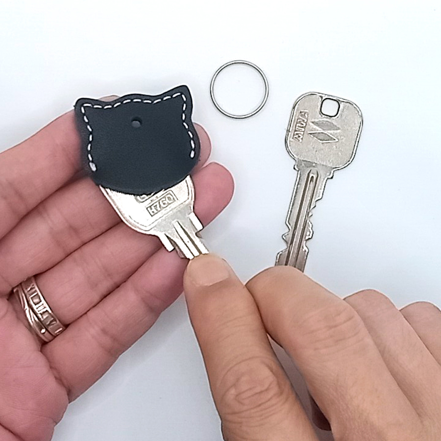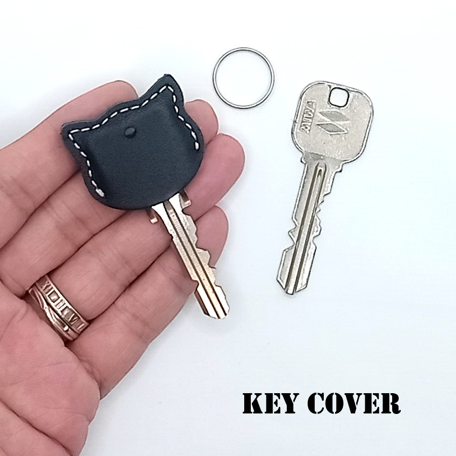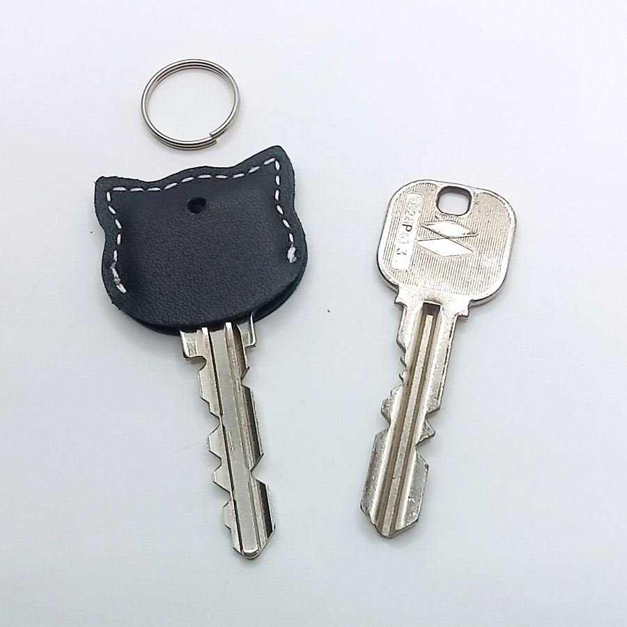 猫好きに。本革製の猫のかわいいキーカバー。鍵にかぶせるだけでOKです。一般的な鍵に対応しています。いつもの鍵をかわいい感じに。本革の質感とかわいい色が素敵なキーカバー。