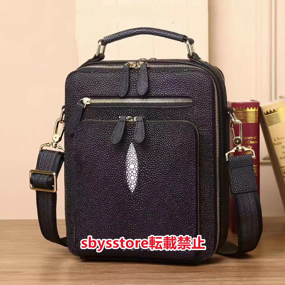 スターマーク付き!エイ革 紳士用 斜めがけ スティングレイ 多機能 アカエイ ガルーシャ メンズハンドバッグ ショルダーバッグ 2WAY