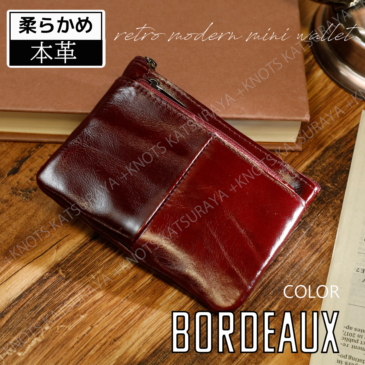 本革 レトロ ミニ財布★ボルドー★レディース メンズ 小さい カードケース 小銭入れ 薄い コンパクト 軽い 小型 牛革レザー キーケースa339