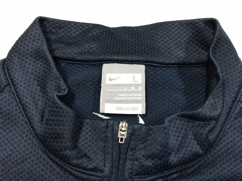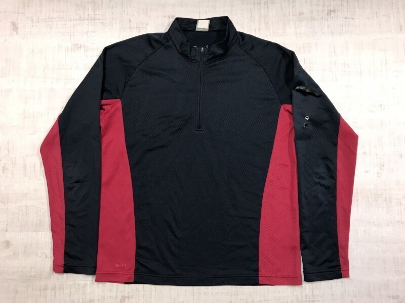 ナイキ NIKE イヤホン穴 ポケット オールド スポーツ トレーニングウェア ハーフジップ ジャージ カットソー Tシャツ ロンT メンズ L 紺/赤 です。