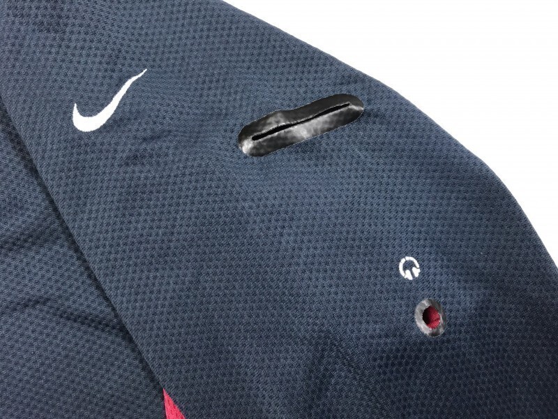 ナイキ NIKE イヤホン穴 ポケット オールド スポーツ トレーニングウェア ハーフジップ ジャージ カットソー Tシャツ ロンT メンズ L 紺/赤