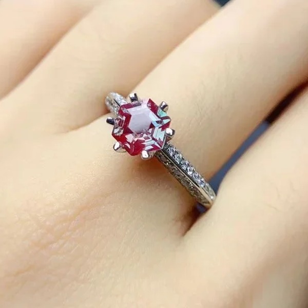 女性のためのアレキサンドライトリング カラーチェンジ 結婚指輪 925スターリングシルバー ,記念日プレゼント