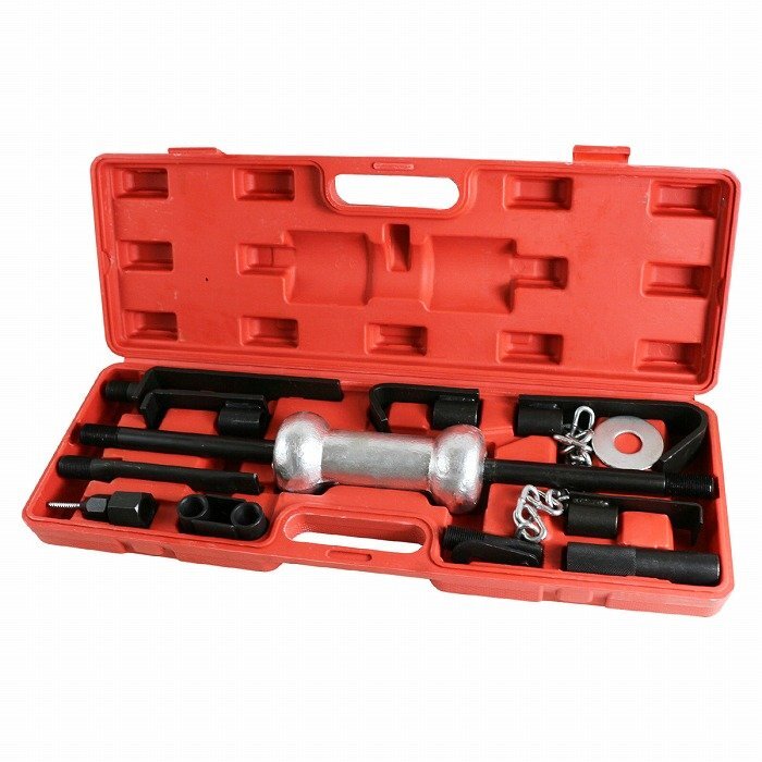 強力ウエイトのスライドハンマーが凹みや曲がり、歪みを直します。