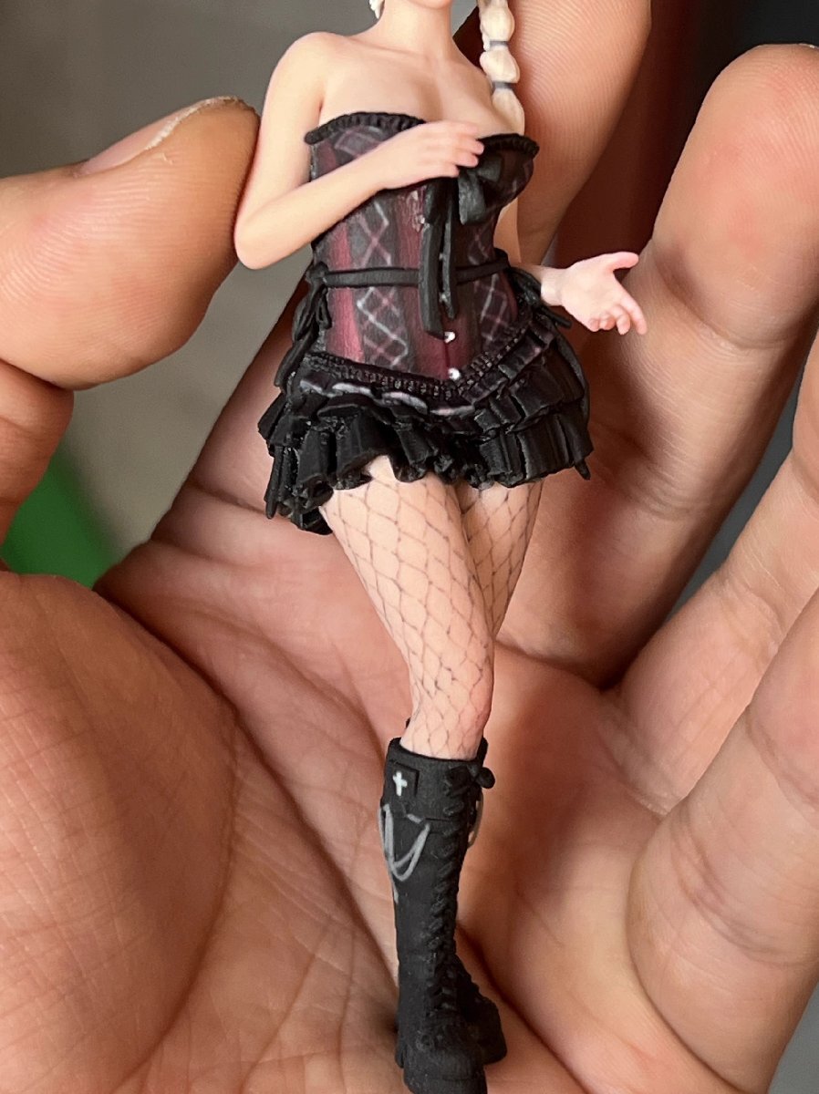 【完成品】1/18スケール 超リアルな黒スカートロリータ少女 レジン製ミニチュアフィギュア 卓上ディスプレイ ミニチュアシーン用