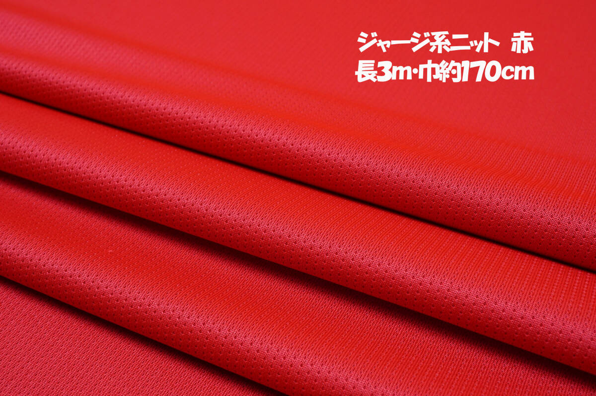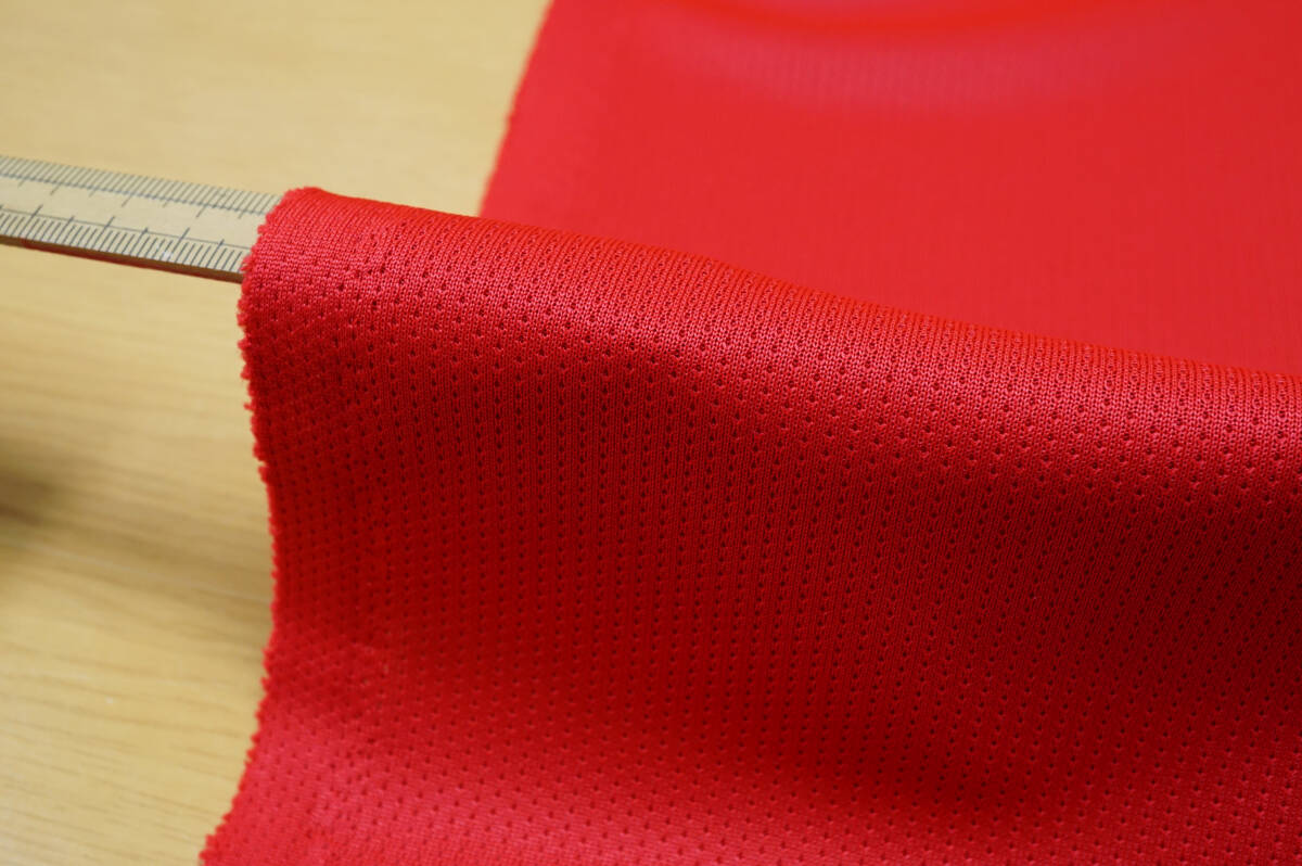 ポリエステル素材で、サイズは長3m・巾約170cm W巾、色調:赤で、やや中厚地、さらりとした質感、ソフト系で、巾方向に弱めの伸縮性がございます。