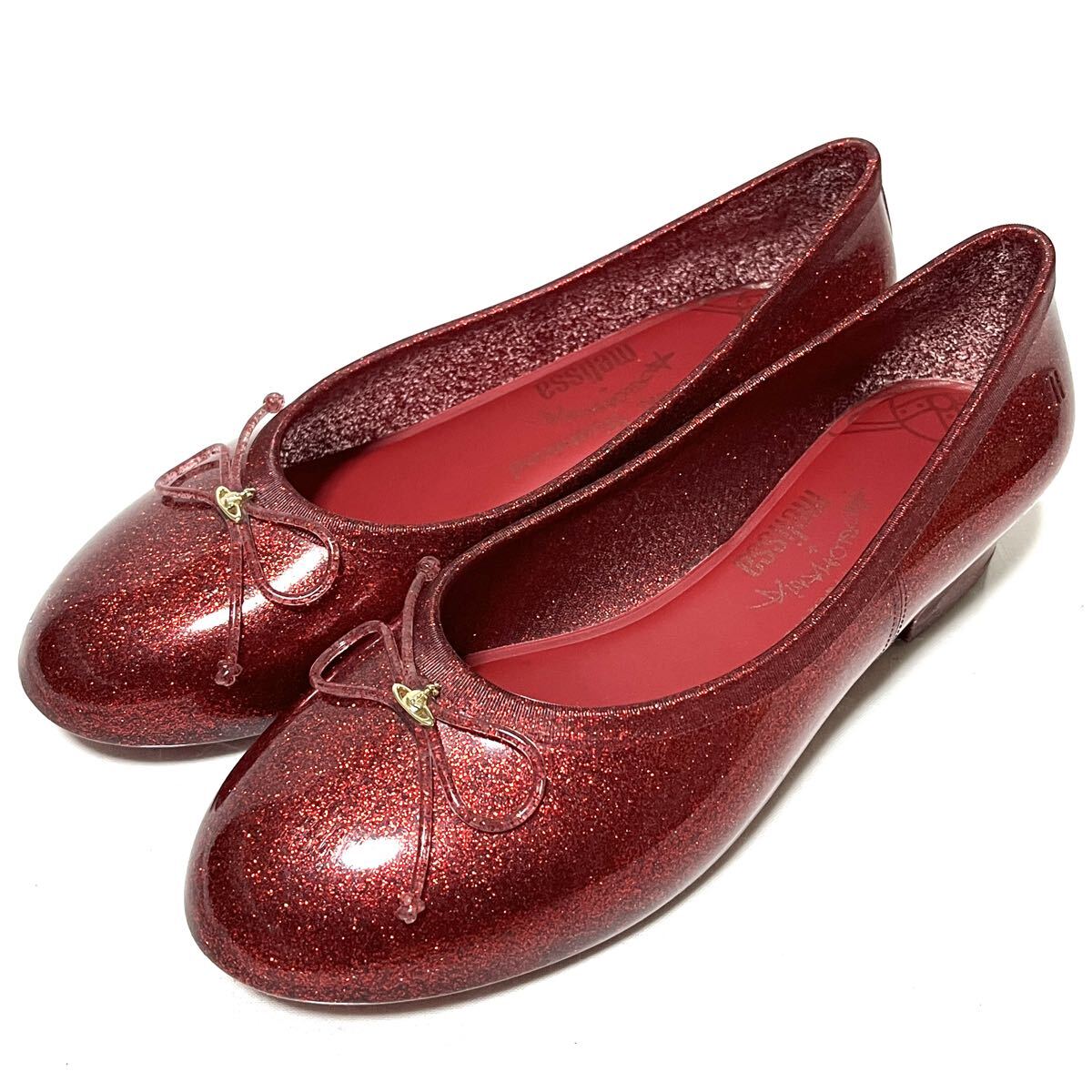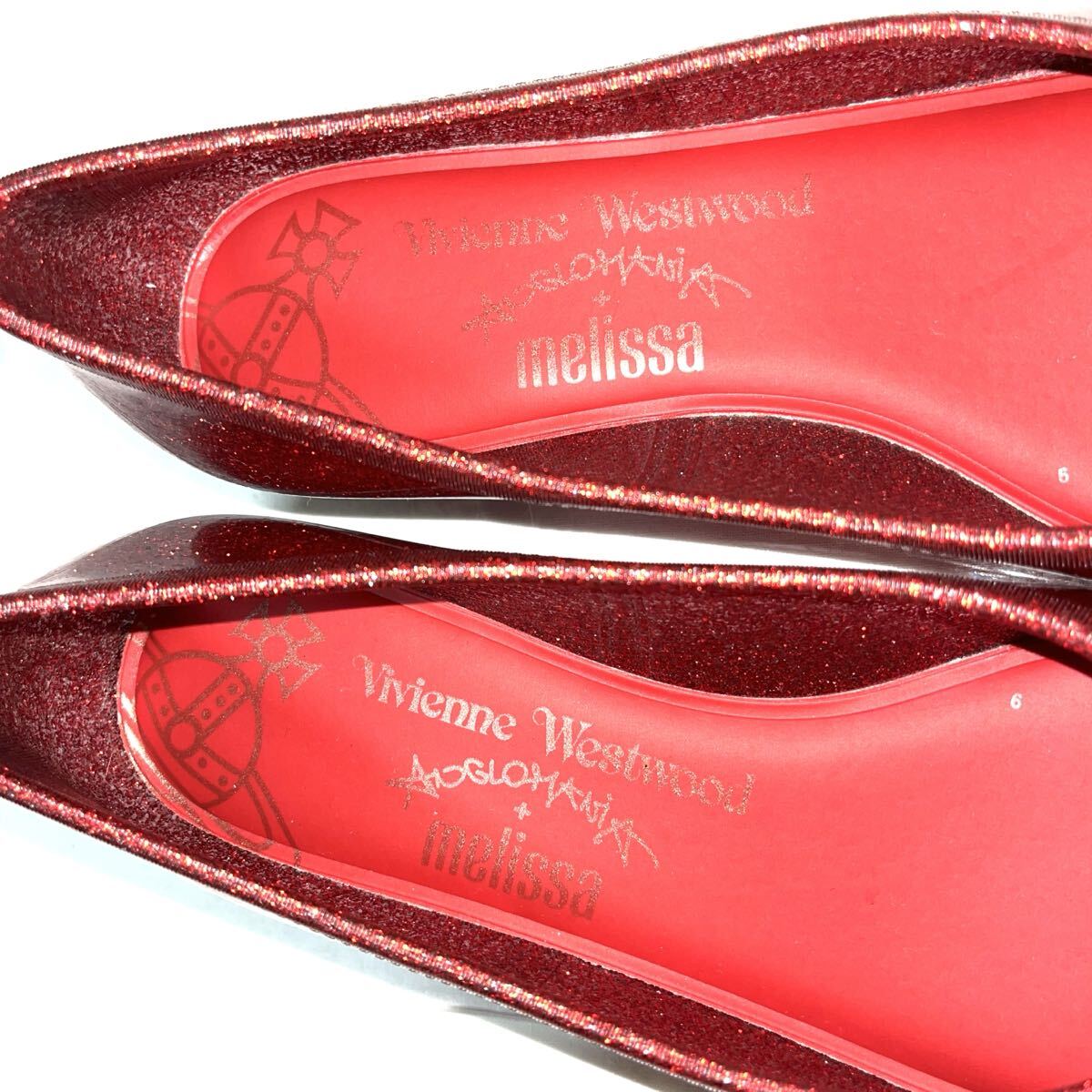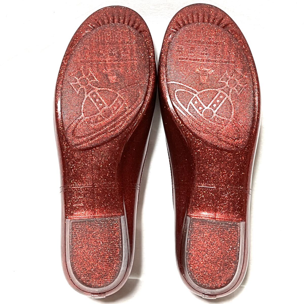 ★美品★VIVIENNE WESTWOOD×MELISSA ヴィヴィアン×メリッサ★グリッターシューズ★24cm★赤 メタリックレッド★コラボ★フラット パンプス レディース★