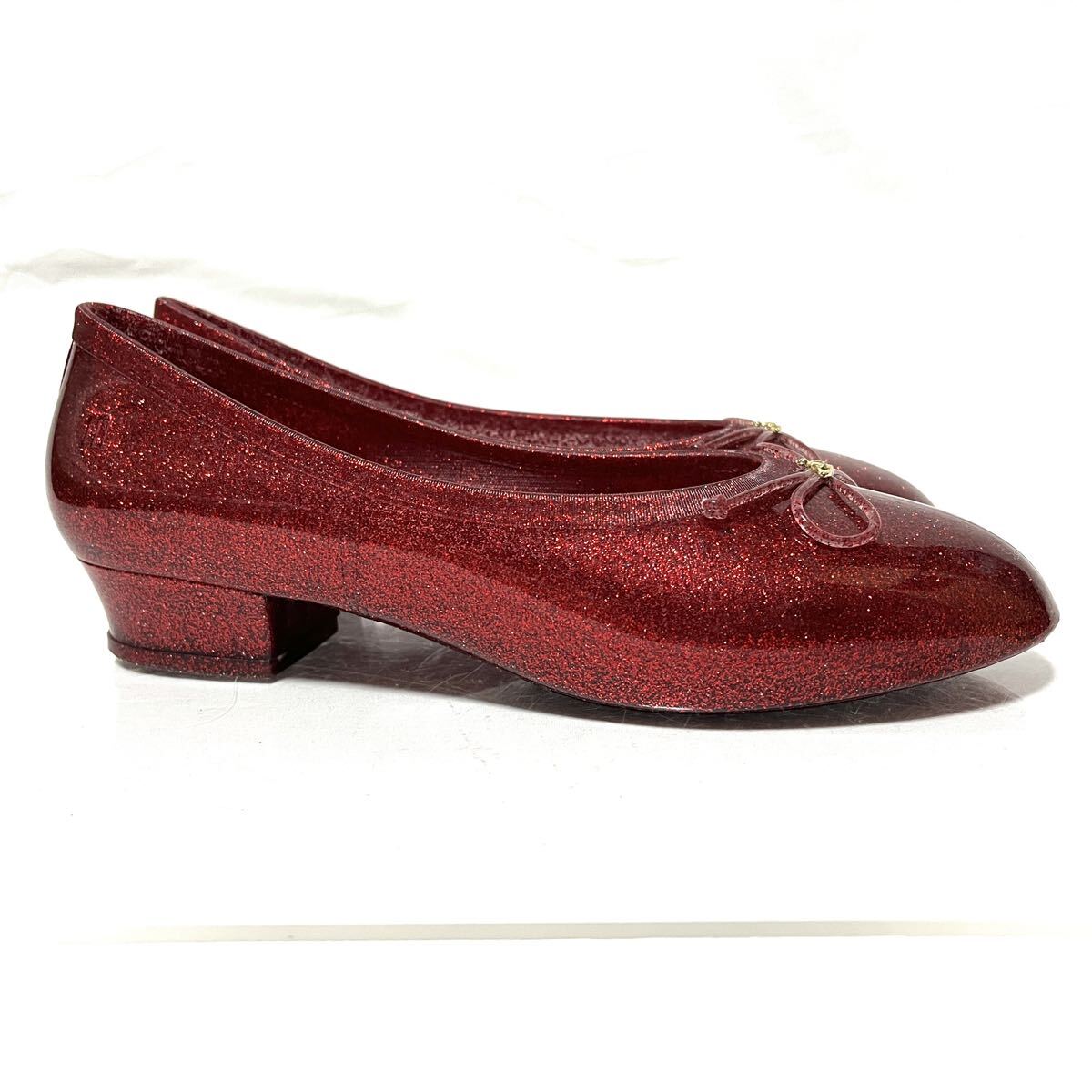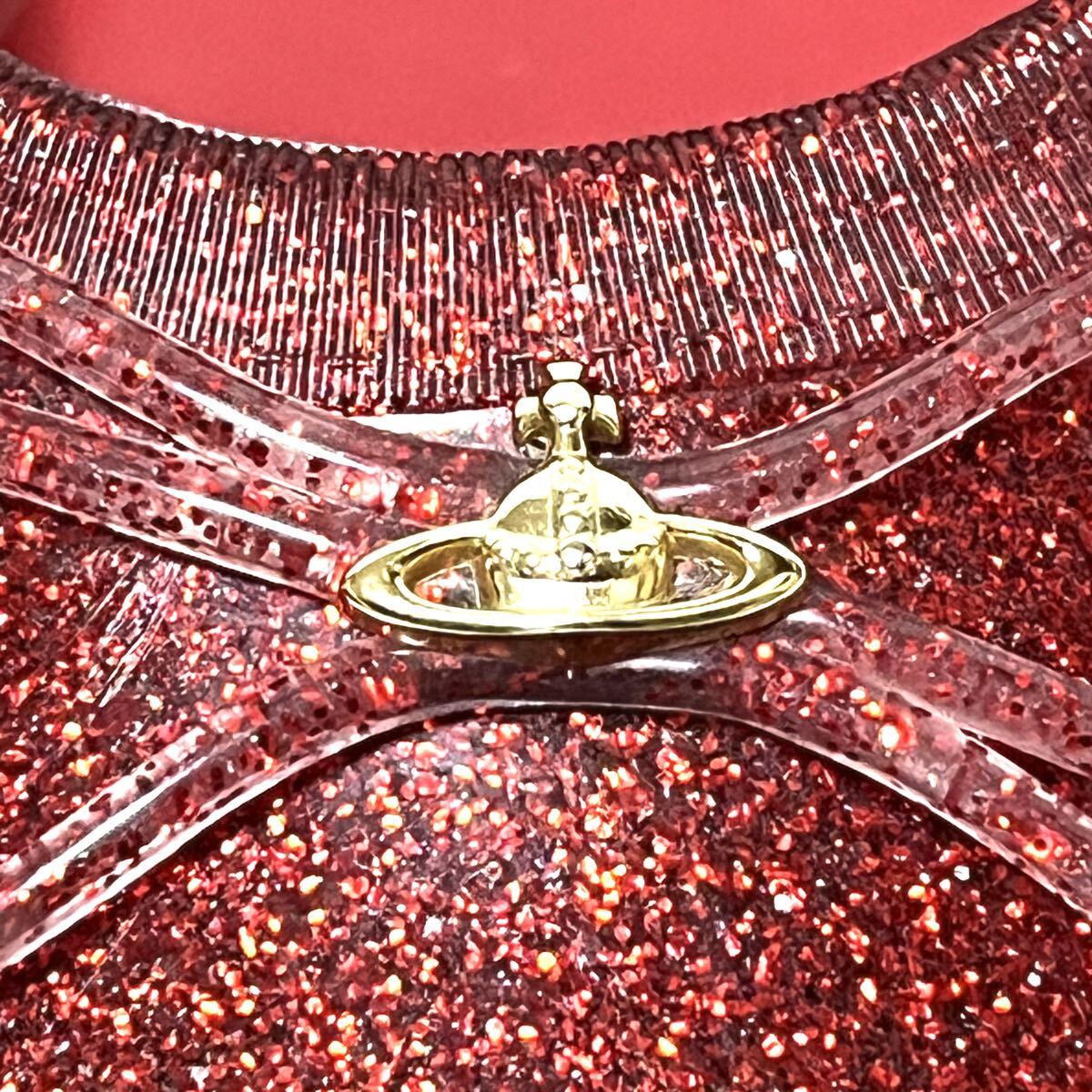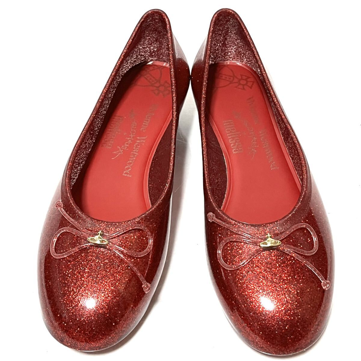 ★美品★VIVIENNE WESTWOOD×MELISSA ヴィヴィアン×メリッサ★グリッターシューズ★24cm★赤 メタリックレッド★コラボ★フラット パンプス レディース★
