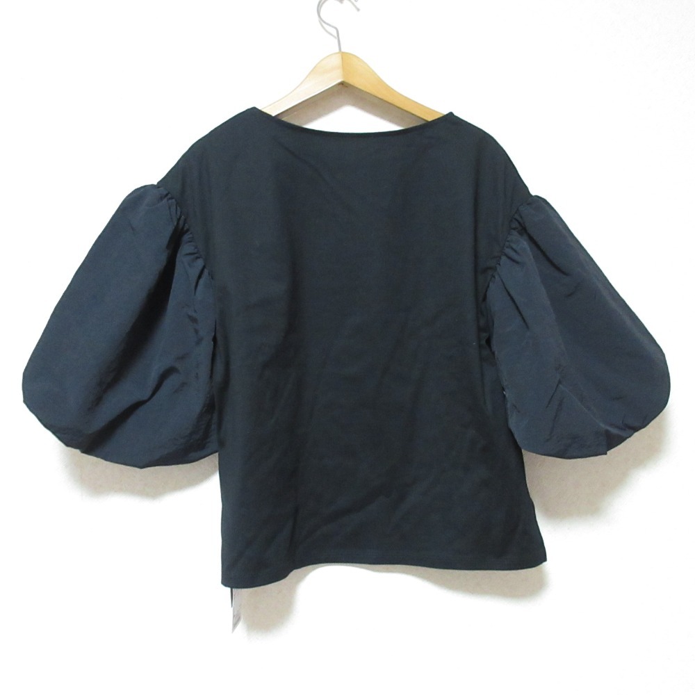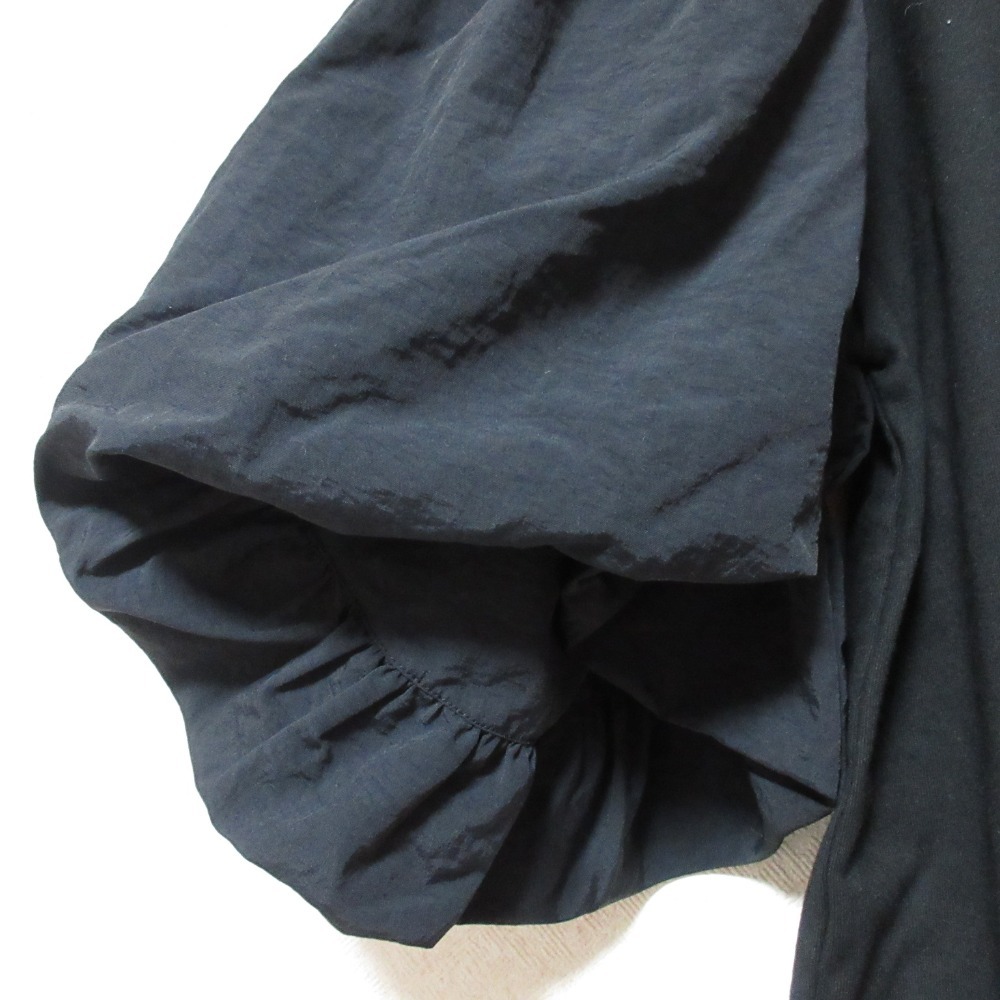 未使用 SHIPS シップス タフタ スリーブ ボリューム デザイン カットソー 半袖 ブラウス プルオーバー F ブラック