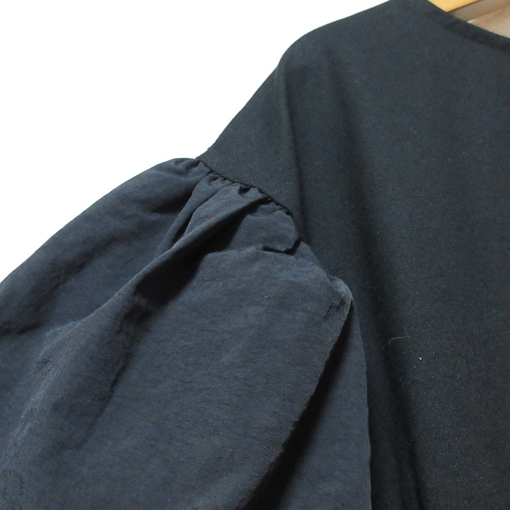 商品名:SHIPS シップス タフタ スリーブ ボリューム デザイン カットソー 半袖 ブラウス プルオーバー F ブラック