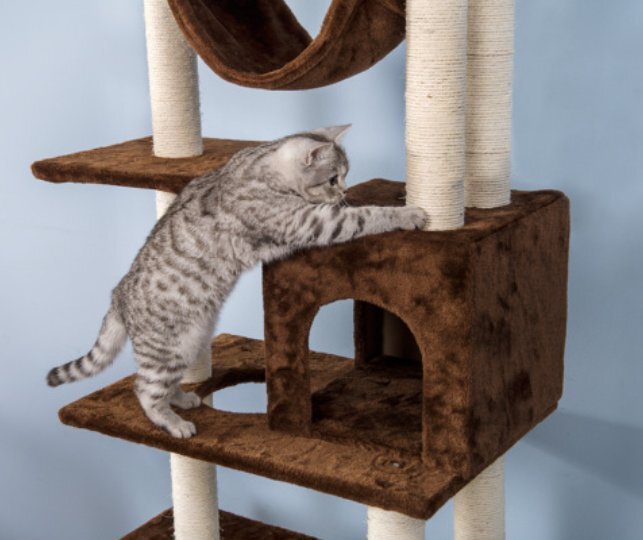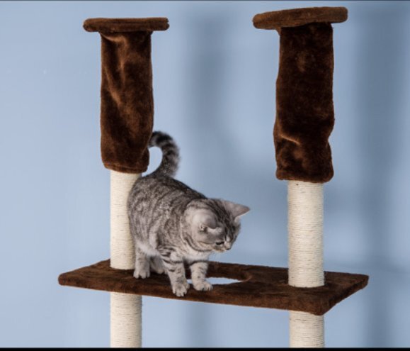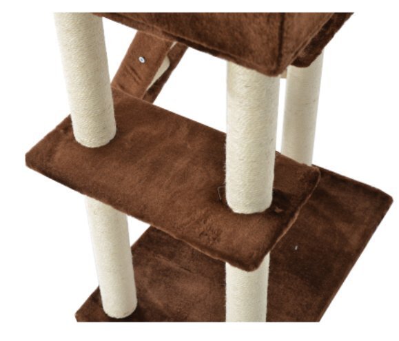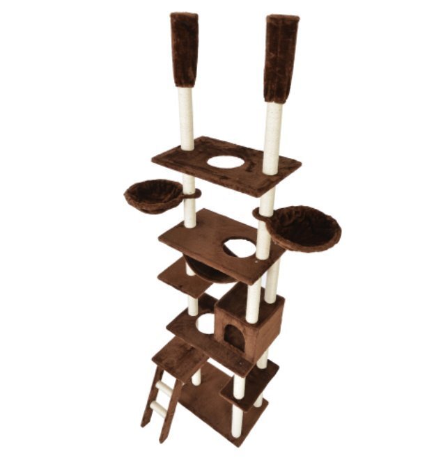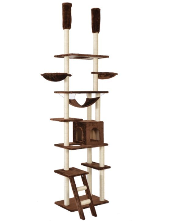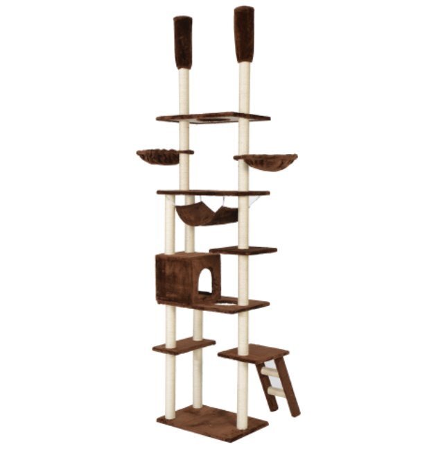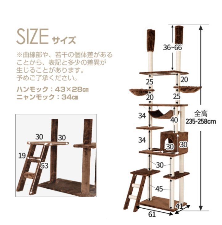 キャットタワー 突っ張り おしゃれ 全面麻紐 全高235-258cm 【ブラウン】