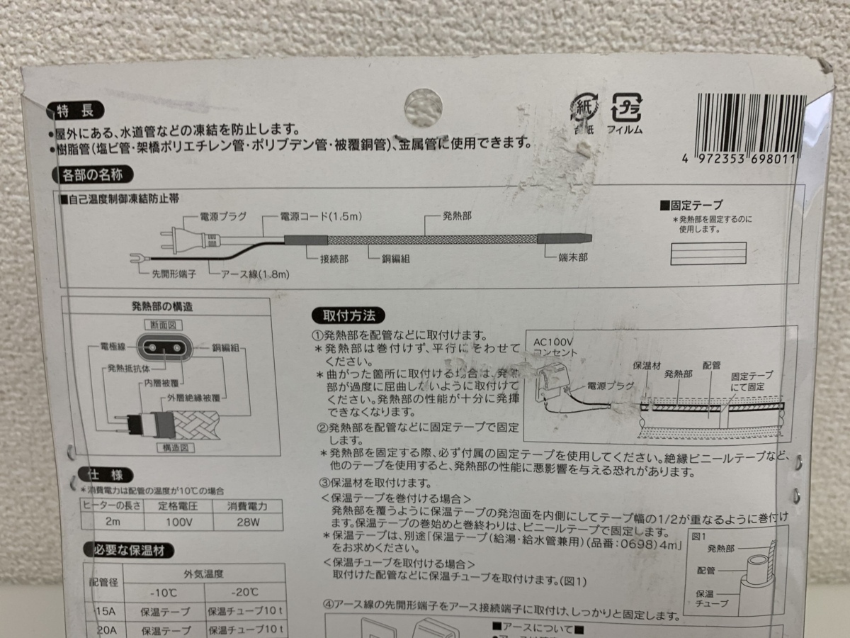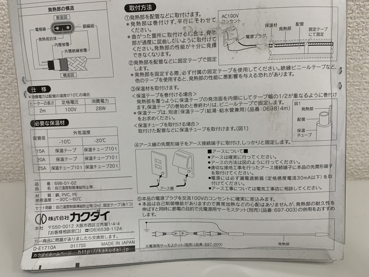 ☆未使用保管品☆ KAKUDAI カクダイ 自己温度制御凍結防止帯 品番698-01-02 2メートル 水道管凍結防止/樹脂管・金属管用/寒冷地用