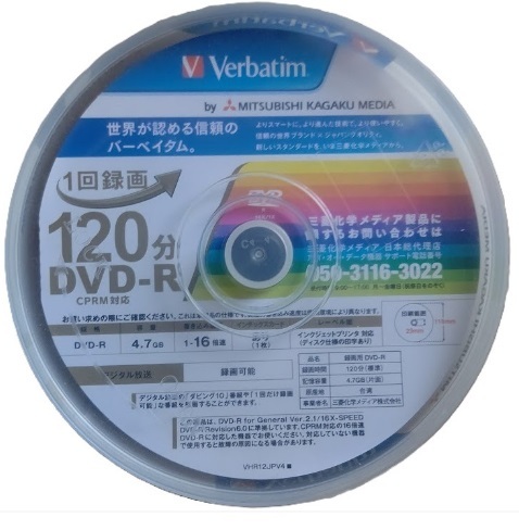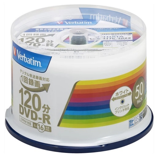 三菱化学メディア Verbatim DVD-R (CPRM) 1回録画用 120分 1-16倍速 スピンドルケース 50枚パック