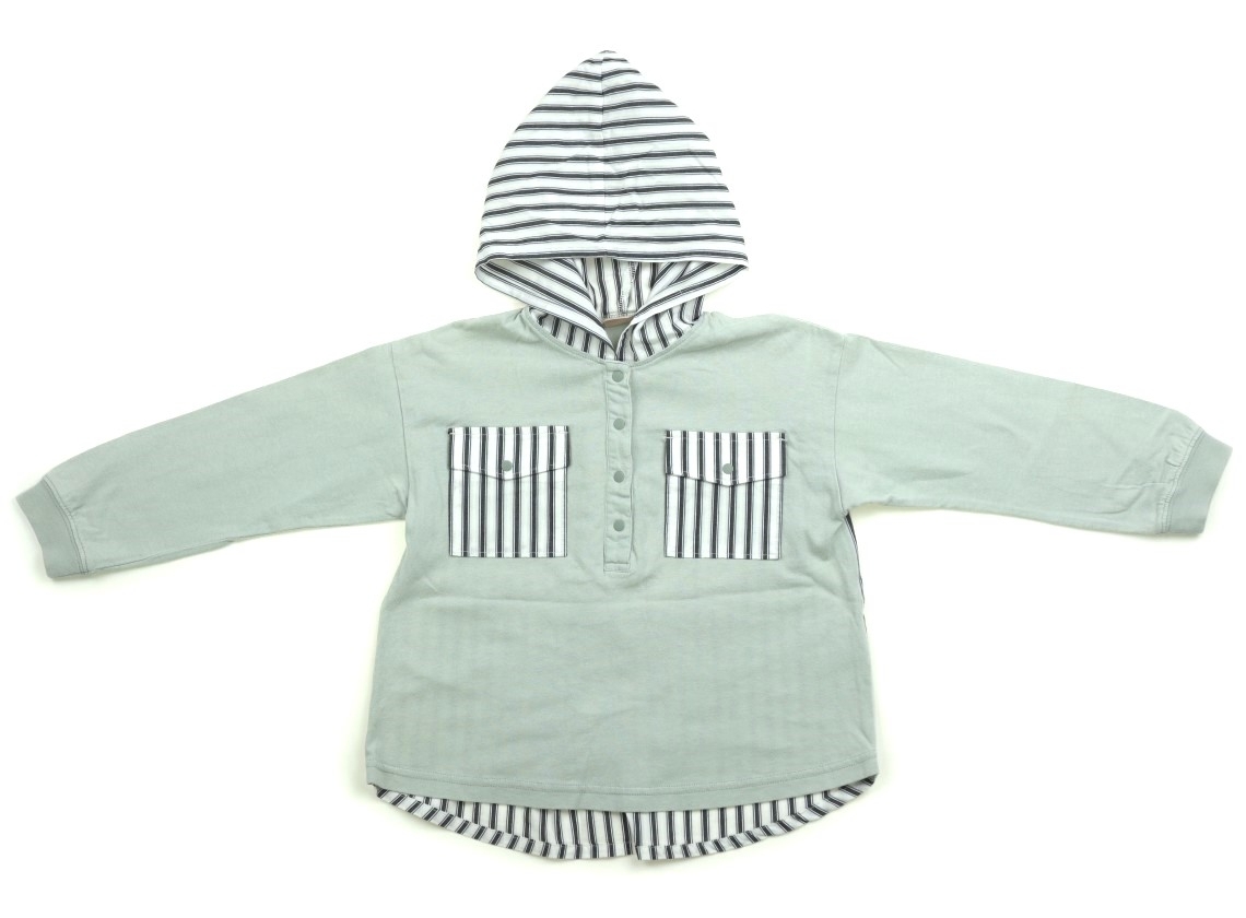フード付き。柄地はシャツ地。全体に色あせ・毛羽立ちがあります。