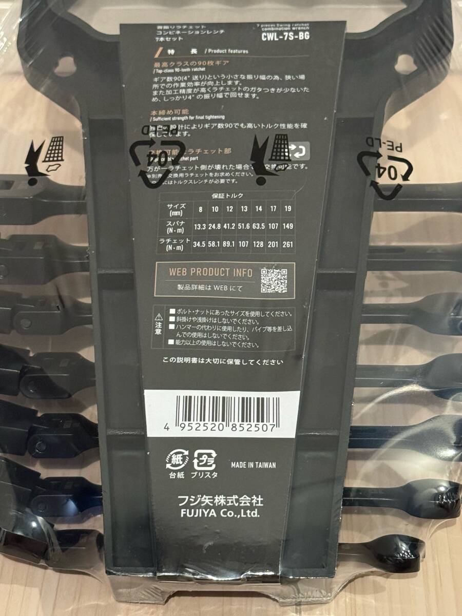 フジ矢・KUROKIN/首振りラチェットコンビネーションレンチ7本セット / CWL-7S-BG (KUROKIN)