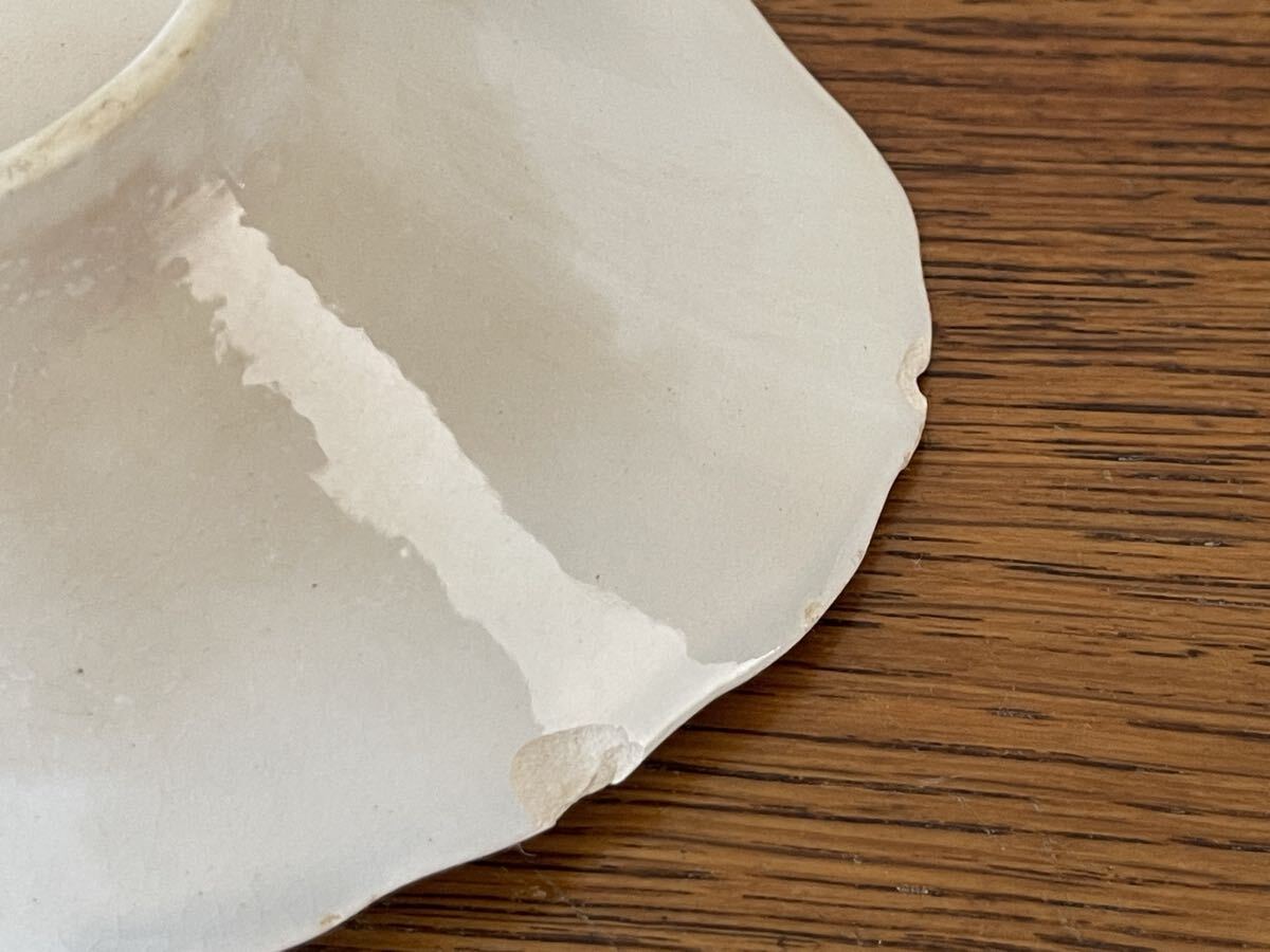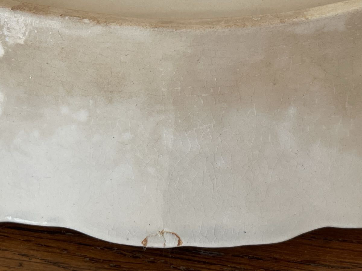 経年による貫入が全体に入り、小傷、痛みやシミがあり、縁にカケがあります。