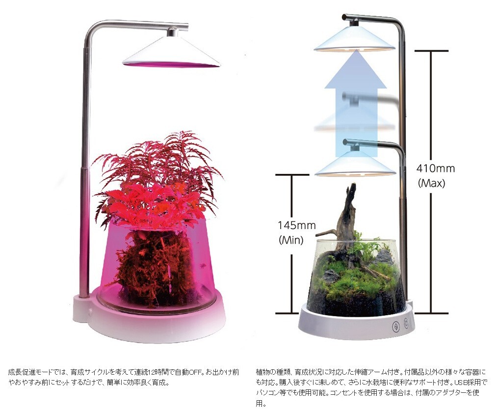 ●鑑賞に適した通常育成モードと植物育成に特化した成長促進モードを搭載。