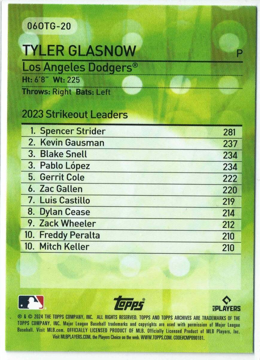 2024 Topps Archives #06OTG-20 グラスノー Tyler Glasnow 2006 Own the Game インサート Dodgers ドジャース