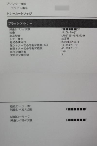 状態 | ○ 印刷枚数 (カウンター) = 17969 枚 ( 出荷前 最終チェック時に若干上昇します ) ○ 動作確認 = 各給紙口よりUSB/有線LAN接続でのテストプリント済みです。 ドライバはメーカーHPよりダウンロードしました。 ○ 消耗品(保証対象外) = 写真ご参照ください。 概ね良好表示です☆ ( EPSON 純正 環境推進トナー(Mサイズ) LPB3T29S 装着☆ ) ○ 外観 = 使用感・中古感ご容赦ください。 外装多少擦り傷ございます。 ○ 付属品 = 電源コードのみ。 ( ドライバ・取扱説明書はメーカーHPよりダウンロード可能です。) *清掃につきましては、簡易な清掃となります。 *設定、メンテナンスに関するサポートは一切行っておりません。 |