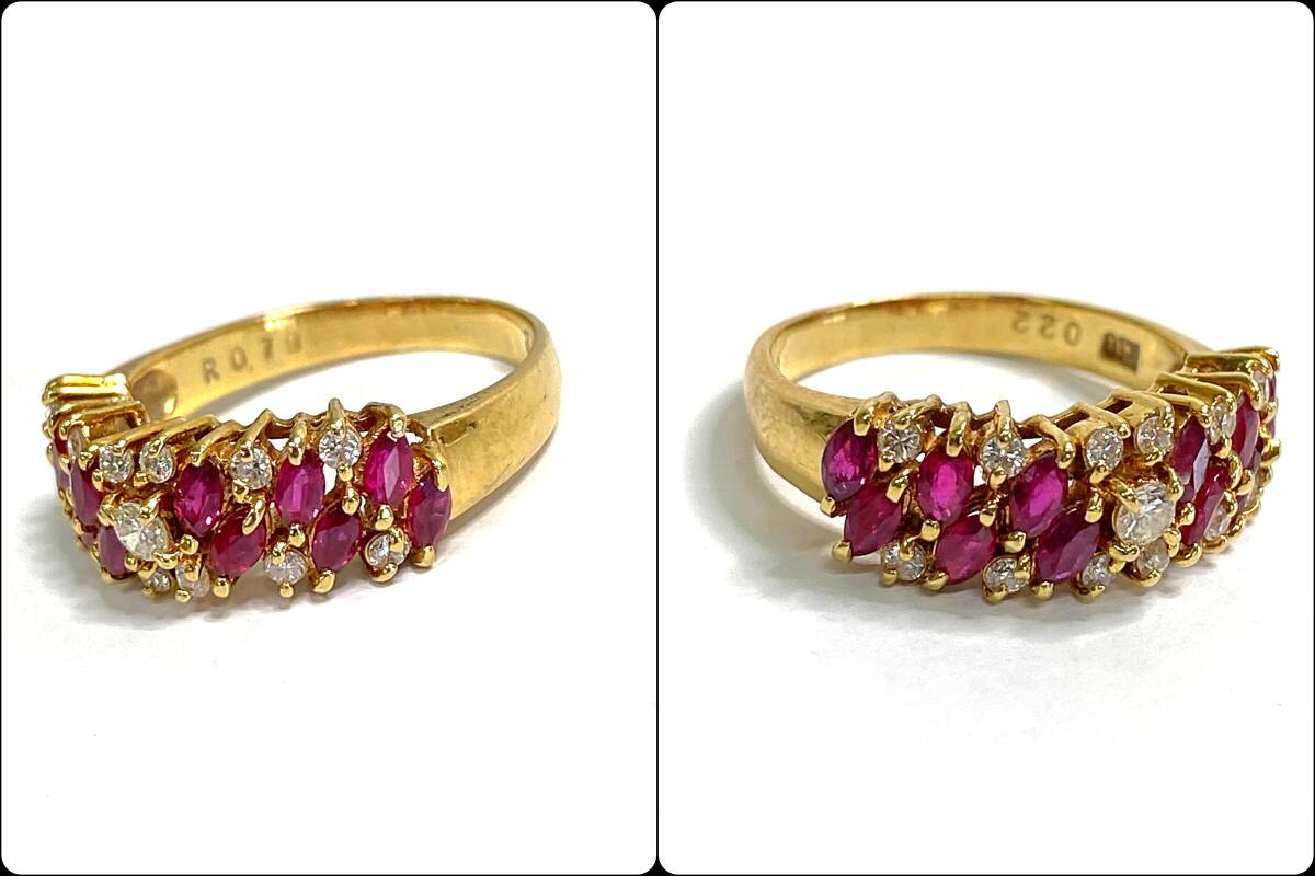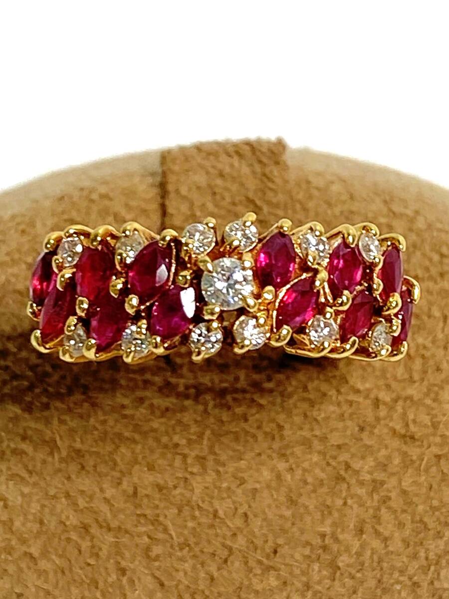 K18製のルビーとダイヤモンドをあしらったデザインリングを入荷いたしました!