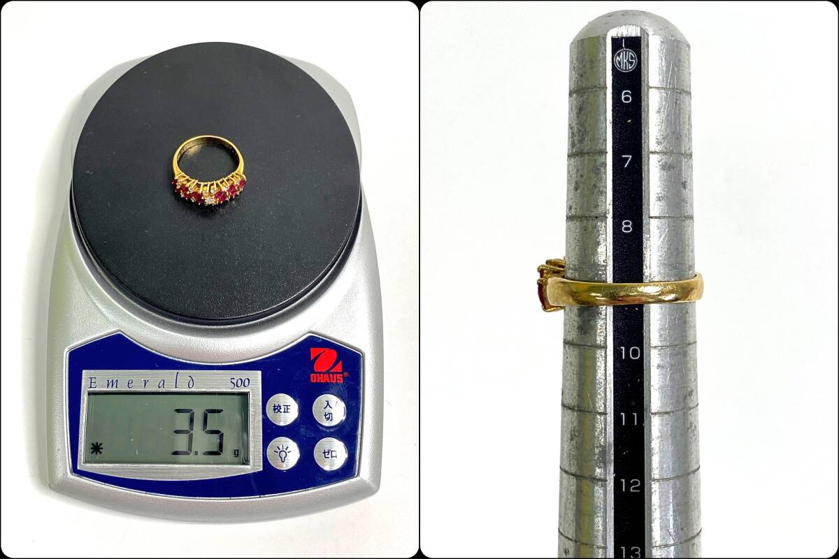 K18 リング ルビー R0.79ct ダイヤモンド 0.22ct 3.5g