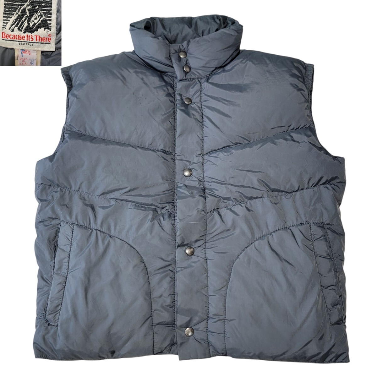 1980年代アメリカ製のダウンベスト。ブランドネームはBecause It's There。ネーミングが抜群なシアトルブランドになります。