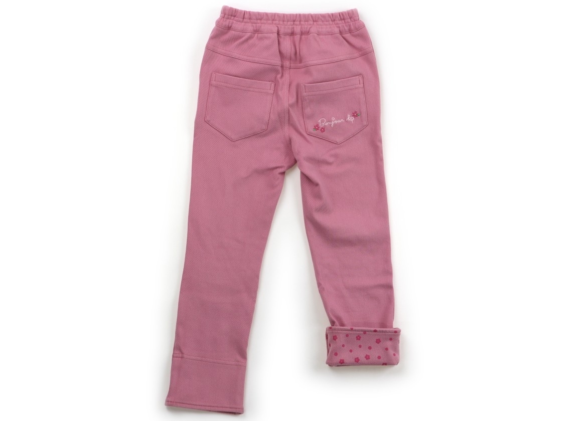 ウエストは総ゴムです。レーヨン・ポリウレタン・アクリル・ポリエステル・コットン素材、裏微起毛生地です。膝付近に黒っぽい汚れあり。毛羽立ちがありますが、普段使いにいかがでしょうか。
