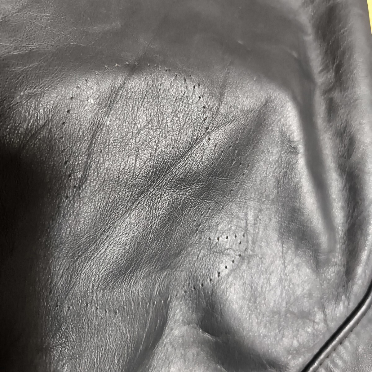 状態は良好ですが、少々汚れ等あります。左腕にワッペンの縫い跡があります。左肩、少し汚れあります。ファスナー、ちょっとキツイです。
