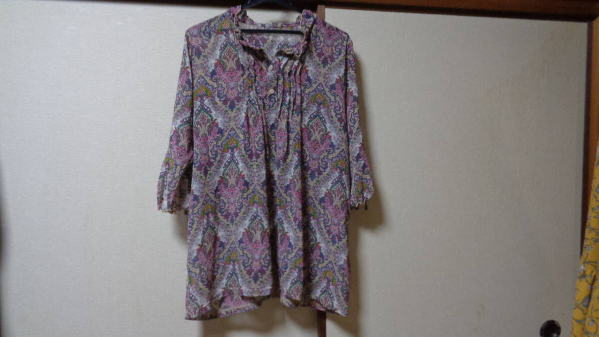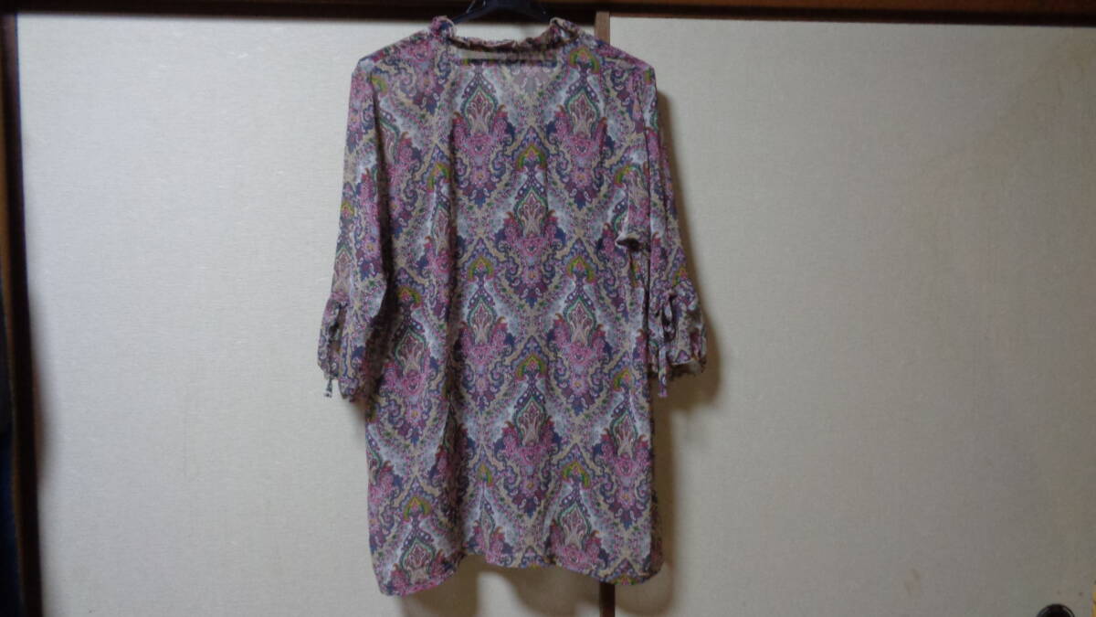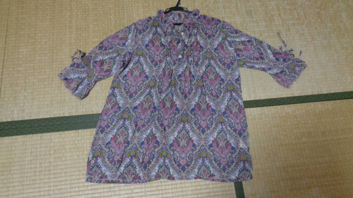 送料込み・未使用 BELL BRIDE 花柄 衿元・袖フリル付き 7分袖トップス 韓国製 LL