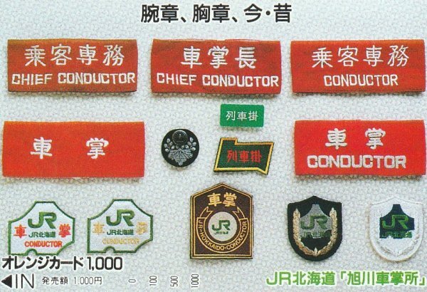 腕章、胸章、今昔 JR北海道旭川車掌所オレンジカード