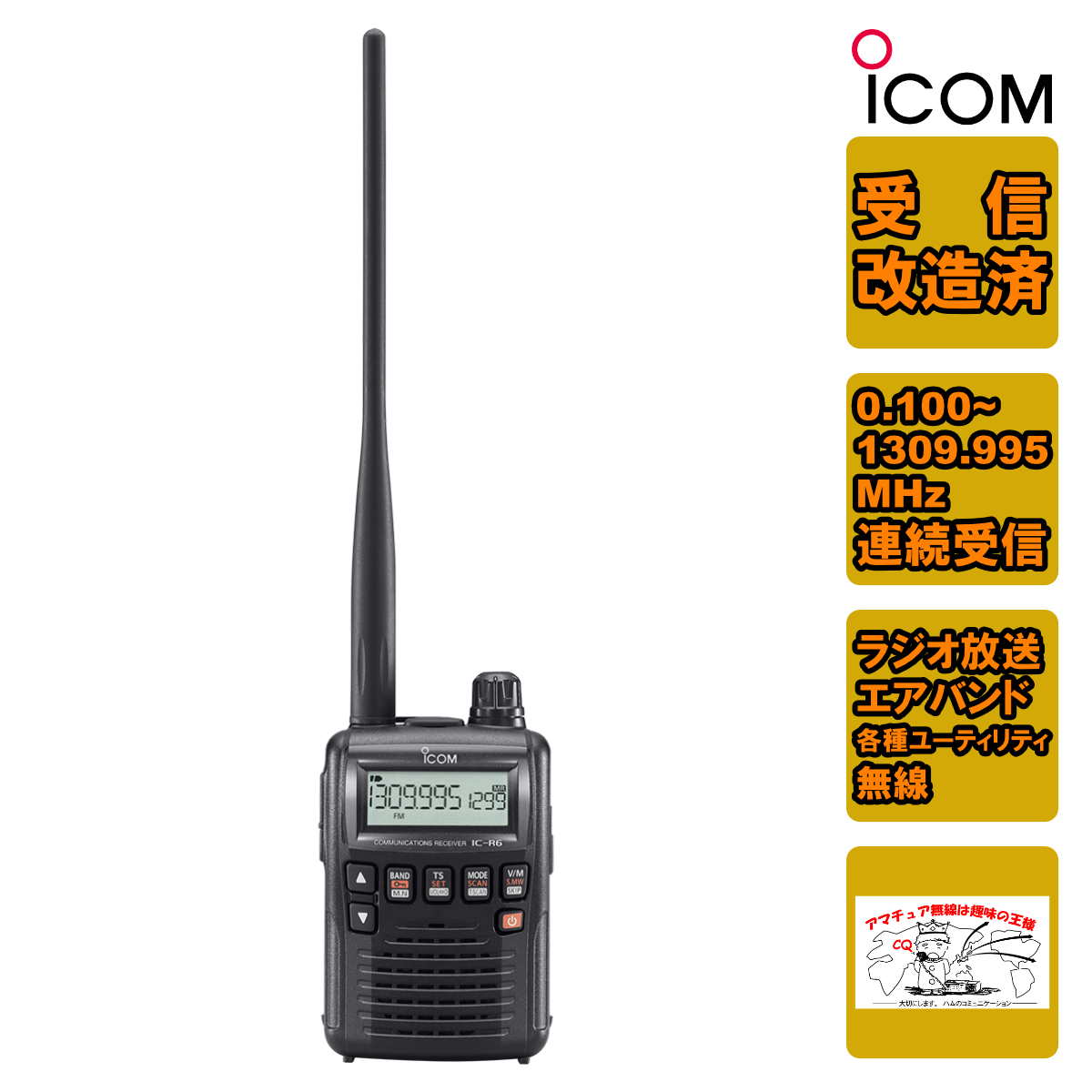 ※受信改造(周波数拡大措置)済のIC-R6となっております。