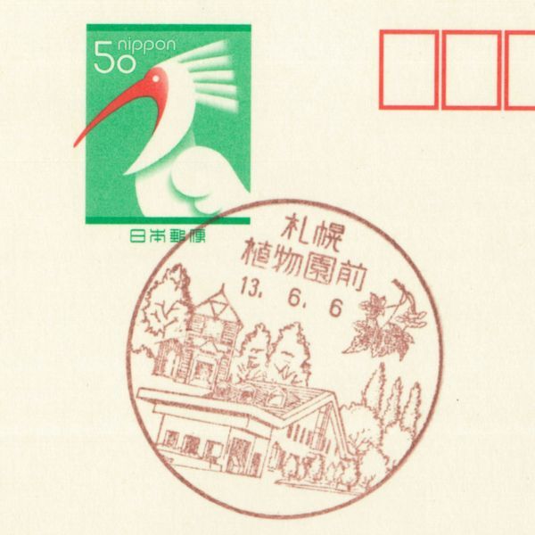 風景印☆初日☆北海道・札幌植物園前・H13.6.6・廃止印