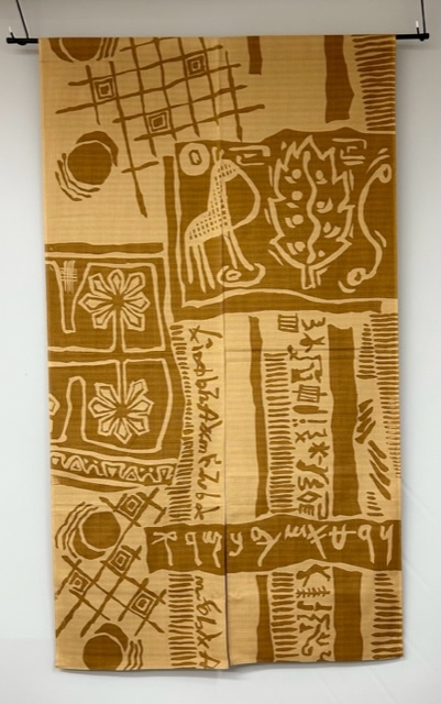 ☆ 珈琲染のれん“キリン柄約巾85cmx丈150cm”訳あり格安にて!! ☆ 100