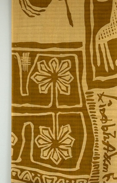 珈琲染のれん“キリン柄”。訳有り格安にて!!無地部分にグレーのスレがあります。左右の耳の部分に柄のかすれがございます。画像でご確認下さい。あまり、気にならないと思いますが、神経質な方は、ご遠慮下さい。格安にて!!新品未使用ですが、ノークレーム・ノーリターンでお願い致します。約巾85cmx丈150cm 通常13,200円を3,990円にて!!珈琲染ですのでなんとも言えない色合いです。綿100% 京都染元 しょうび苑