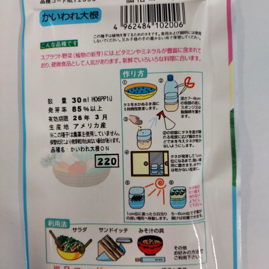 送料無料☆即決!ビタミン、ミネラル栄養豊富 お水でかんたんスプラウト栽培 かいわれ大根 3袋セット ◇郵便発送
