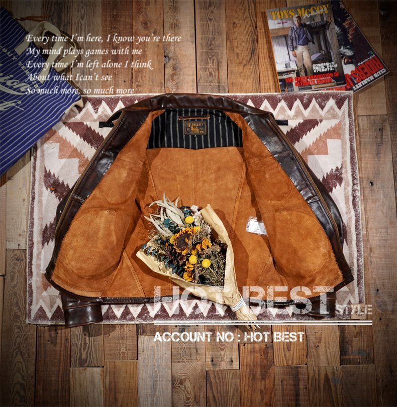 茶芯カウハイドならではの経年変化は、着るほどに個性を生み、持ち主だけの表情を刻んでいきます。時間とともに深みが増し、ヴィンテージライクな雰囲気を存分に楽しめる逸品です。
