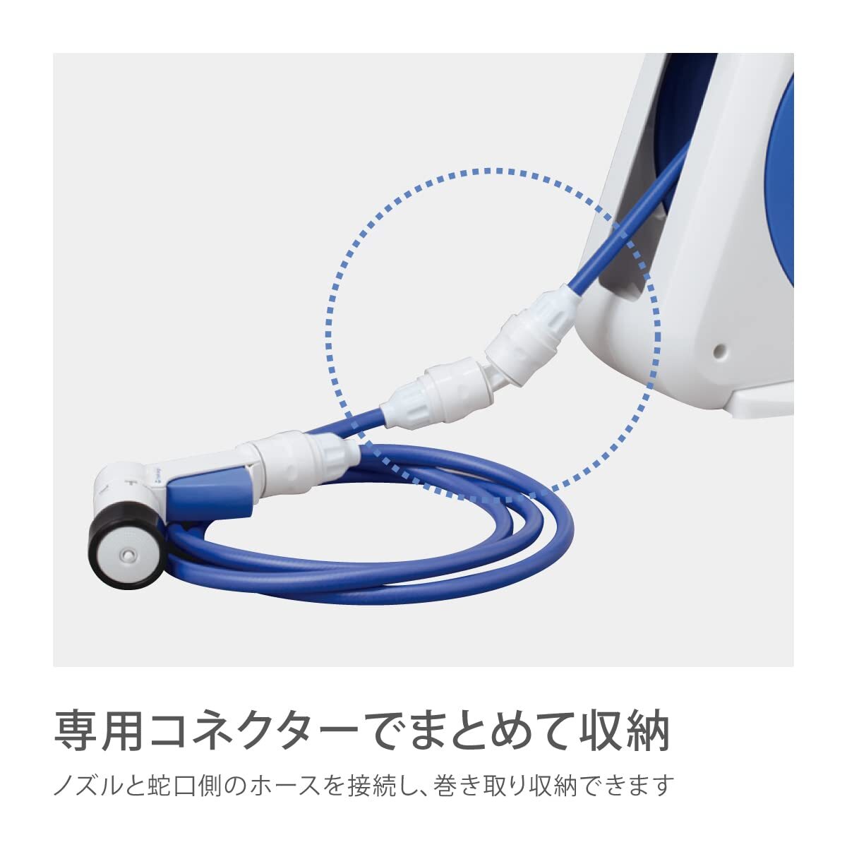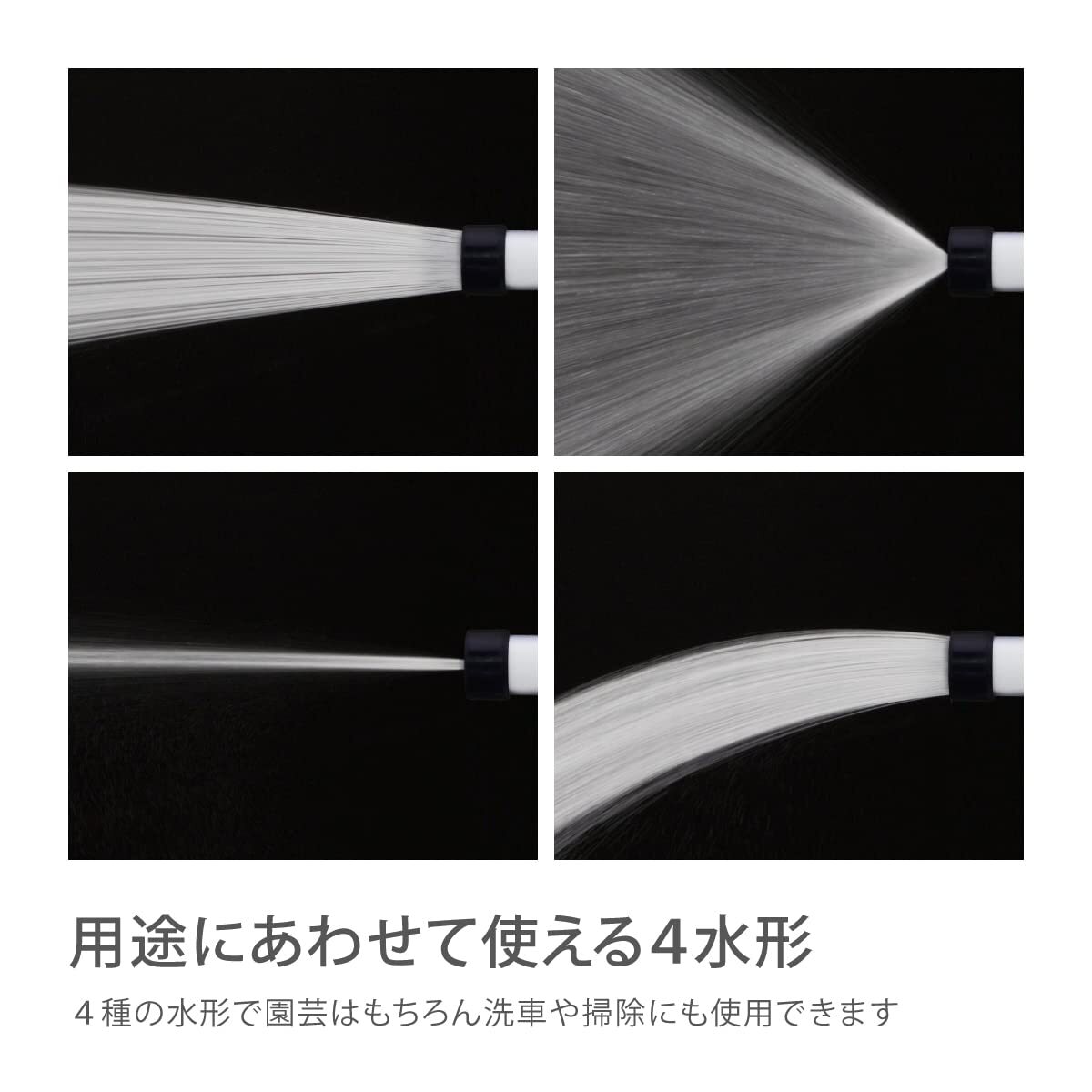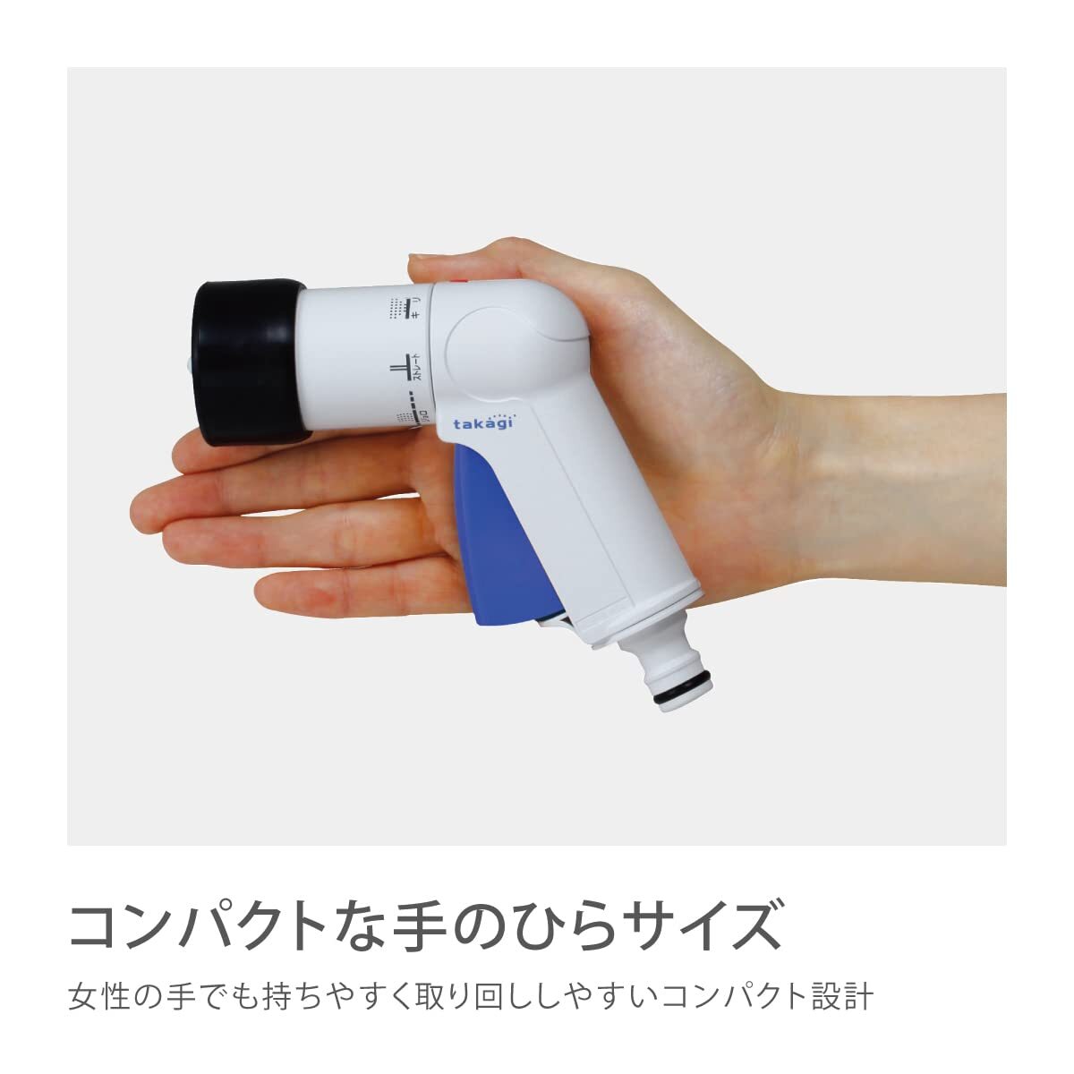 すっきり収納できる軽量コンパクトタイプの散水ホースリール。 散水ノズルも軽くコンパクトな手のひらサイズでありながら、水形は4タイプに切り替えられます。