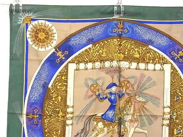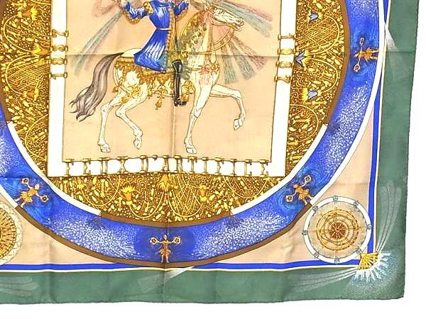 1円 HERMES エルメス FEUX D'ARTIFICE【技巧の火】カレ90 シルク100% スカーフ ストール ショール グリーン系×マルチカラー FU1075
