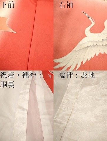 産着【表地:正絹・胴裏:化繊、襦袢:化繊】の状態は接写画像のように下前・右袖・襦袢の紐・祝着の胴裏・襦袢の胴裏・襦袢の表地所々に薄い汚れがございます。 お安く出品致しますので、是非この機会にいかがでしょうか? |