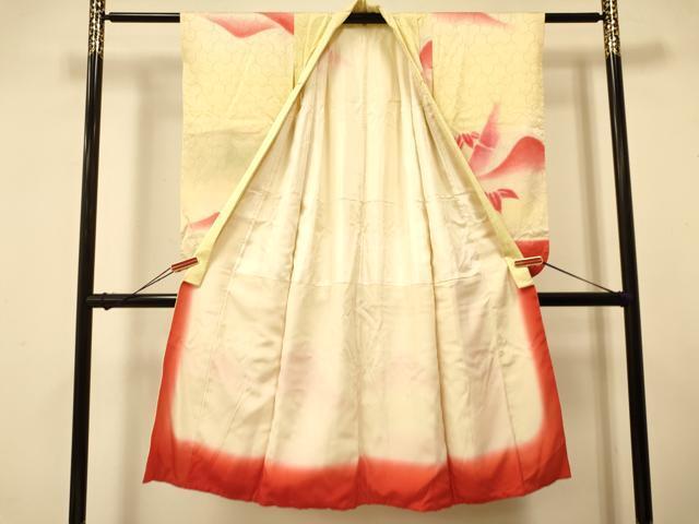 【祝着】 身丈 127.5cm(肩から) 裄丈 49.5cm(肩上げ 4.5cm) 袖丈 72.5cm 縫込み 6cm 袖幅 31cm 前幅 19cm 後幅 27cm 着物縫いこみ 内揚げ 21.5cm (腰上げ 0cm) 裄 お袖側 約5cm 身頃側 約2.5cm 《 サイズについてはこちら 》 |