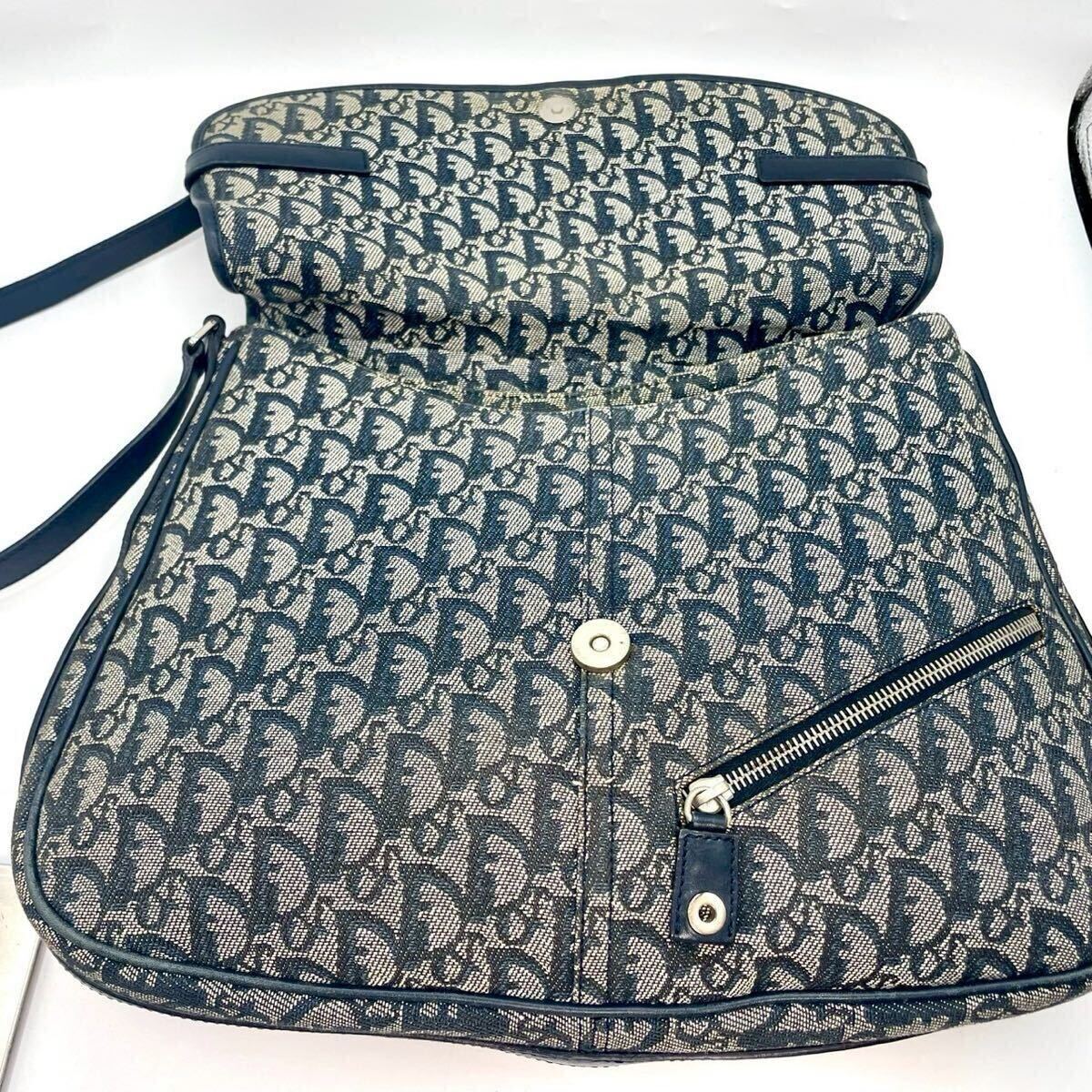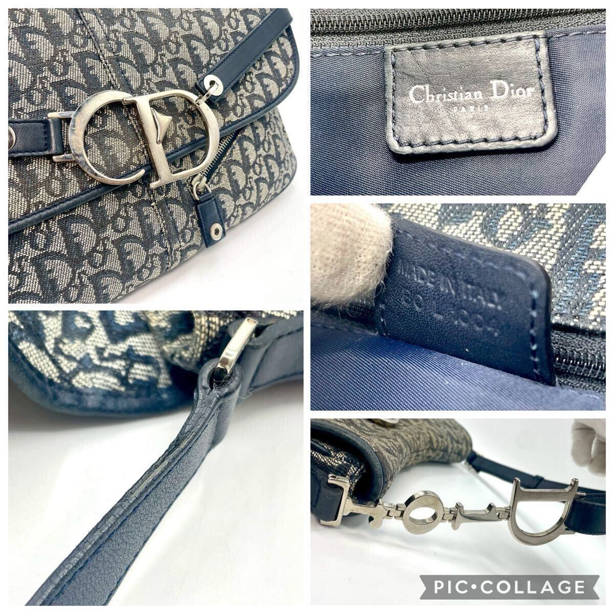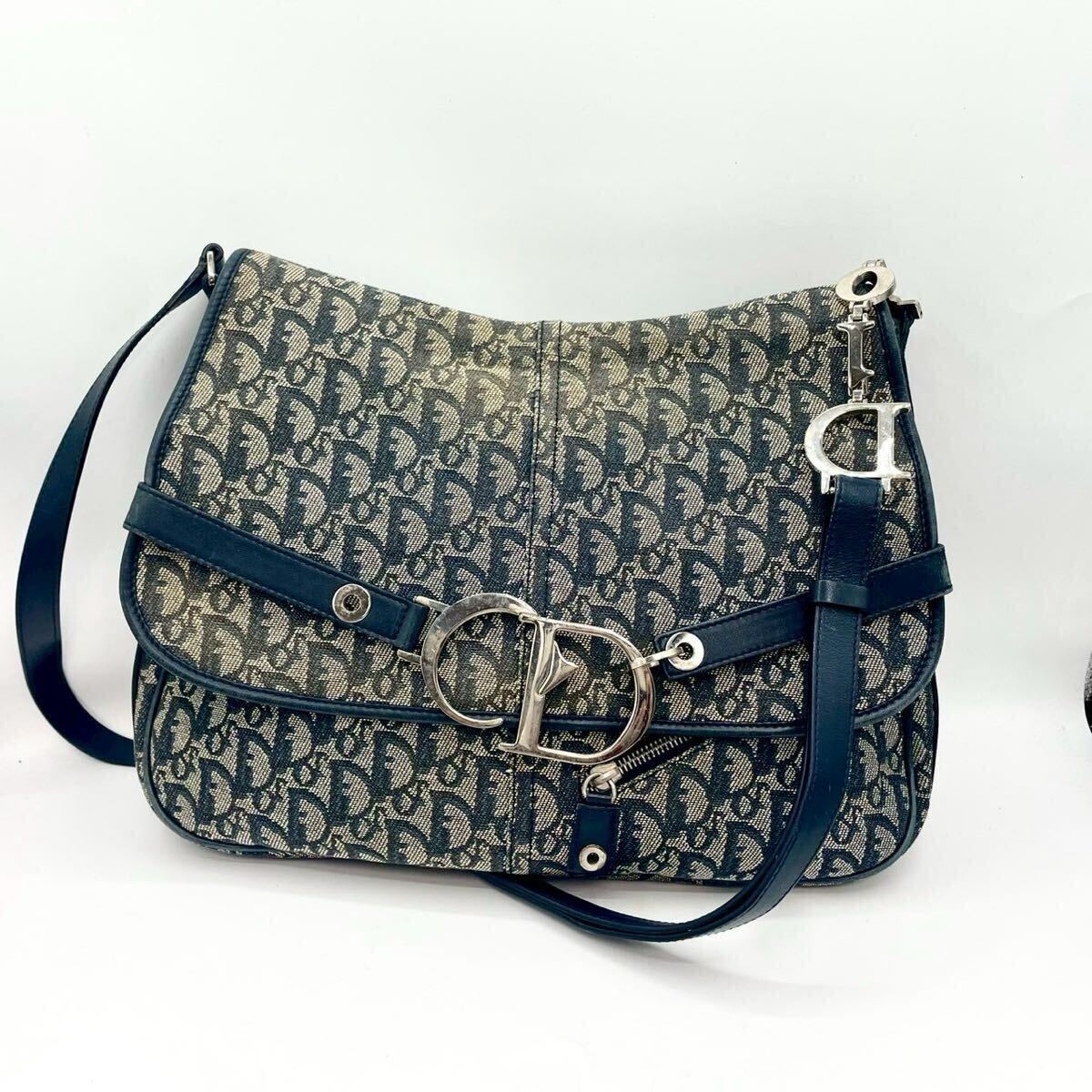 1円 ◎美品◎ Dior ディオール ショルダーバッグ 斜め掛けトロッター CD金具 ロゴショルダー サドル キャンバス ネイビー レディース